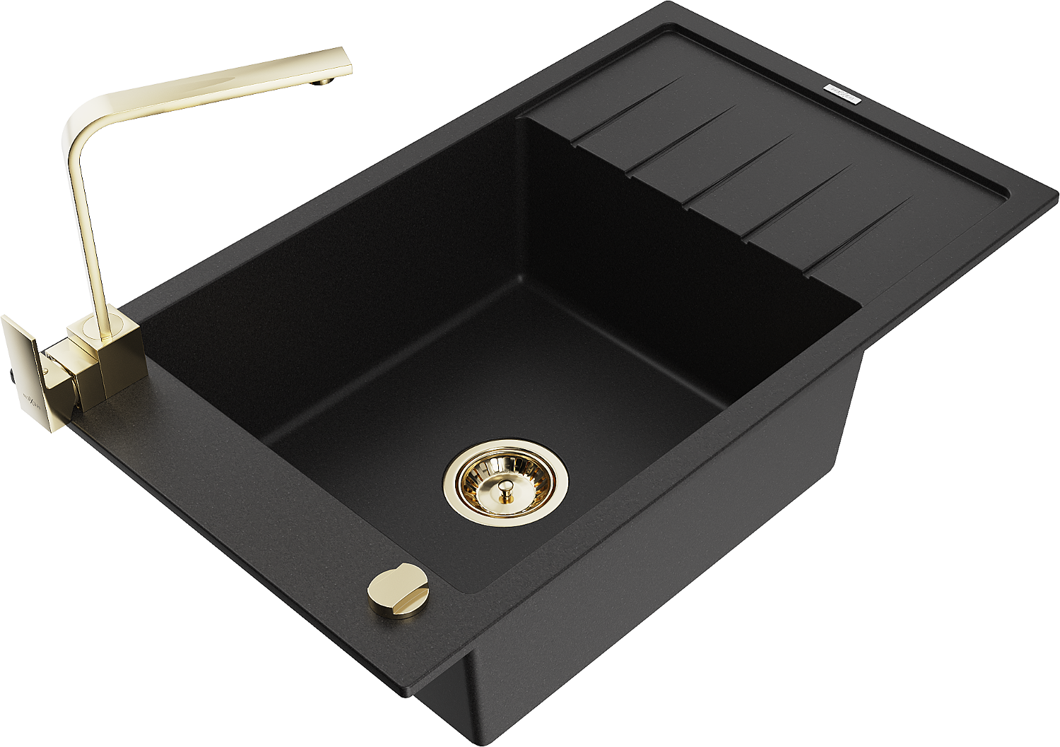 Mexen Elias granitizlietne 1-kameru ar noteci un virtuves jaucējkrānu Rita, melns - 6511-77-670300-50