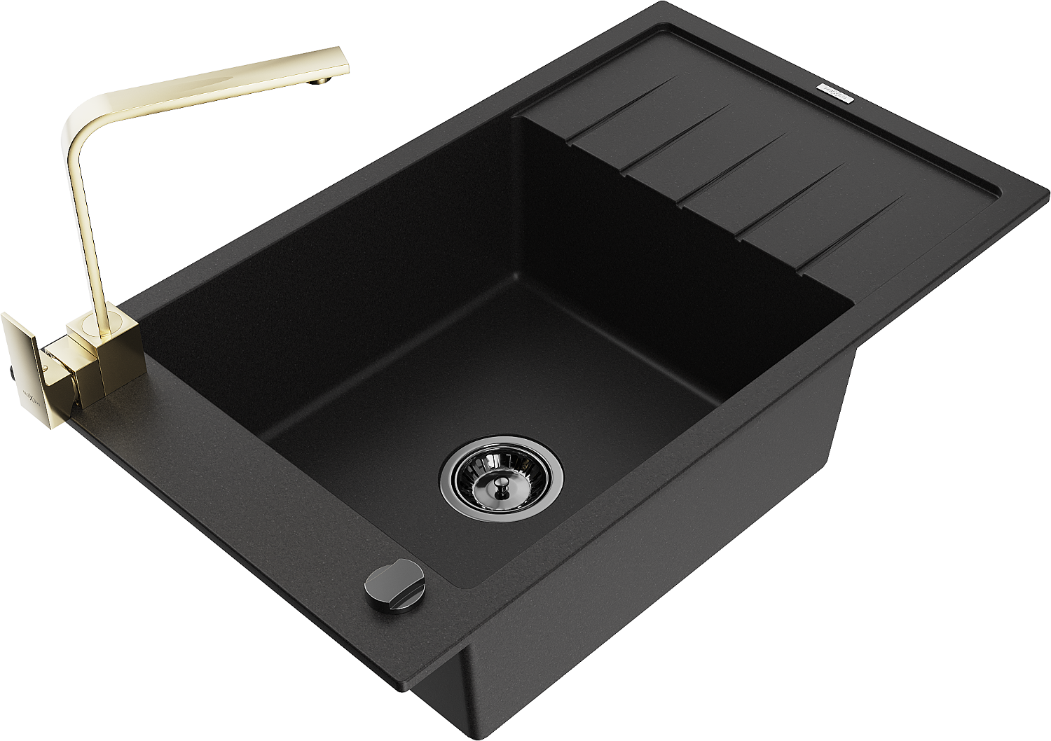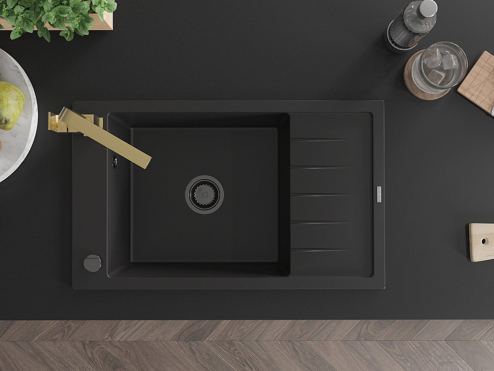 Mexen Elias granitizlietne vienkameru ar pilinātāju un virtuves jaucējkrānu Rita, melna - 6511-77-670300-50-B