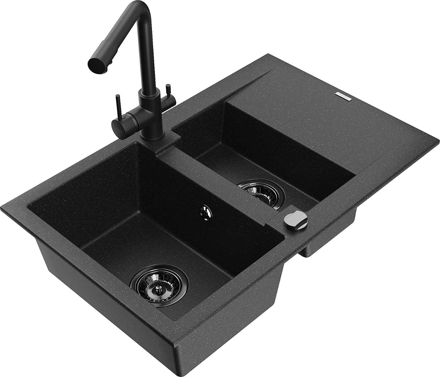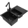 Mexen Gaspar granīta izlietne ar 1,5 nodalījumiem un noteces paneli un virtuves krāni Duero, melns/sudraba