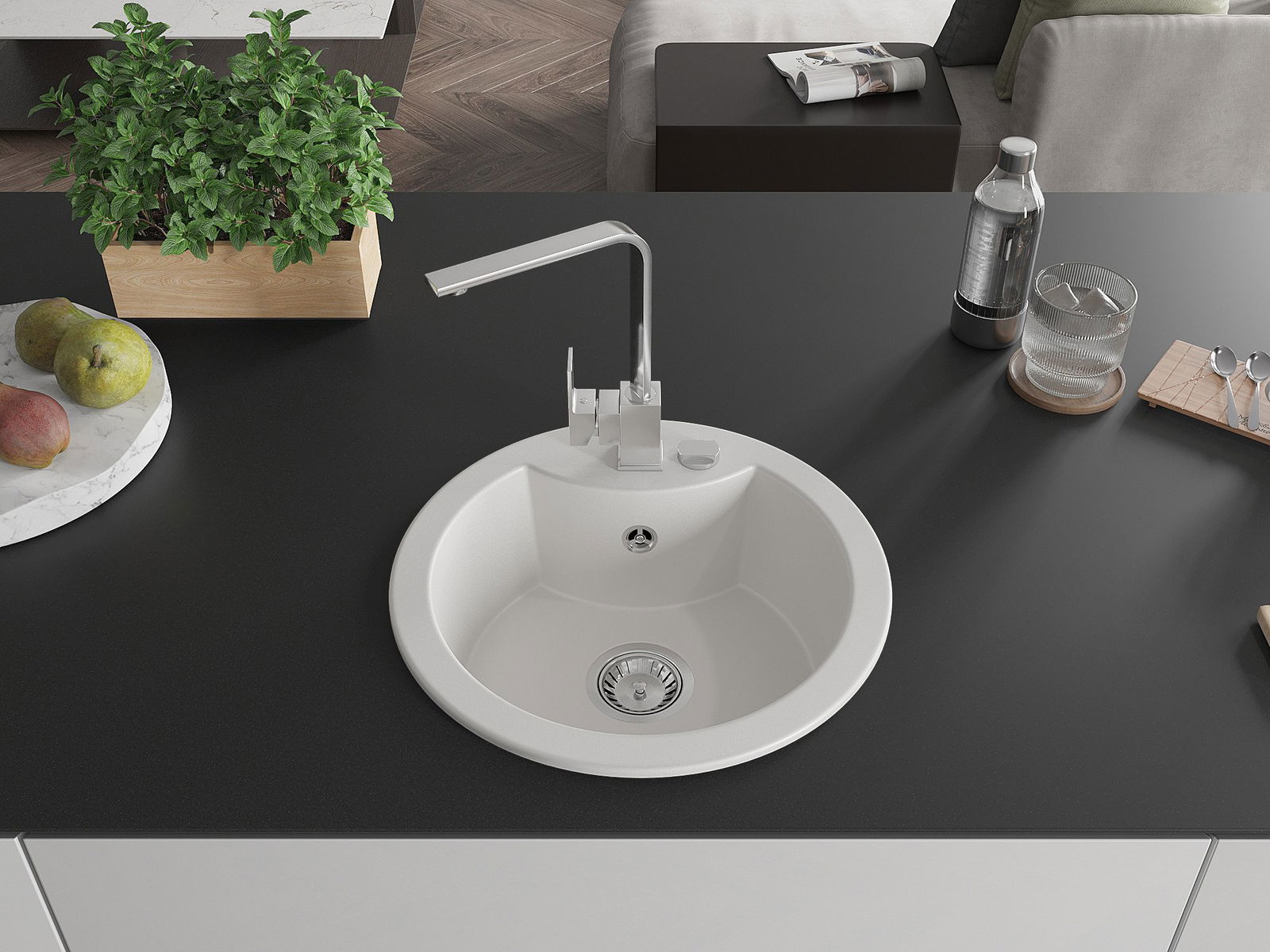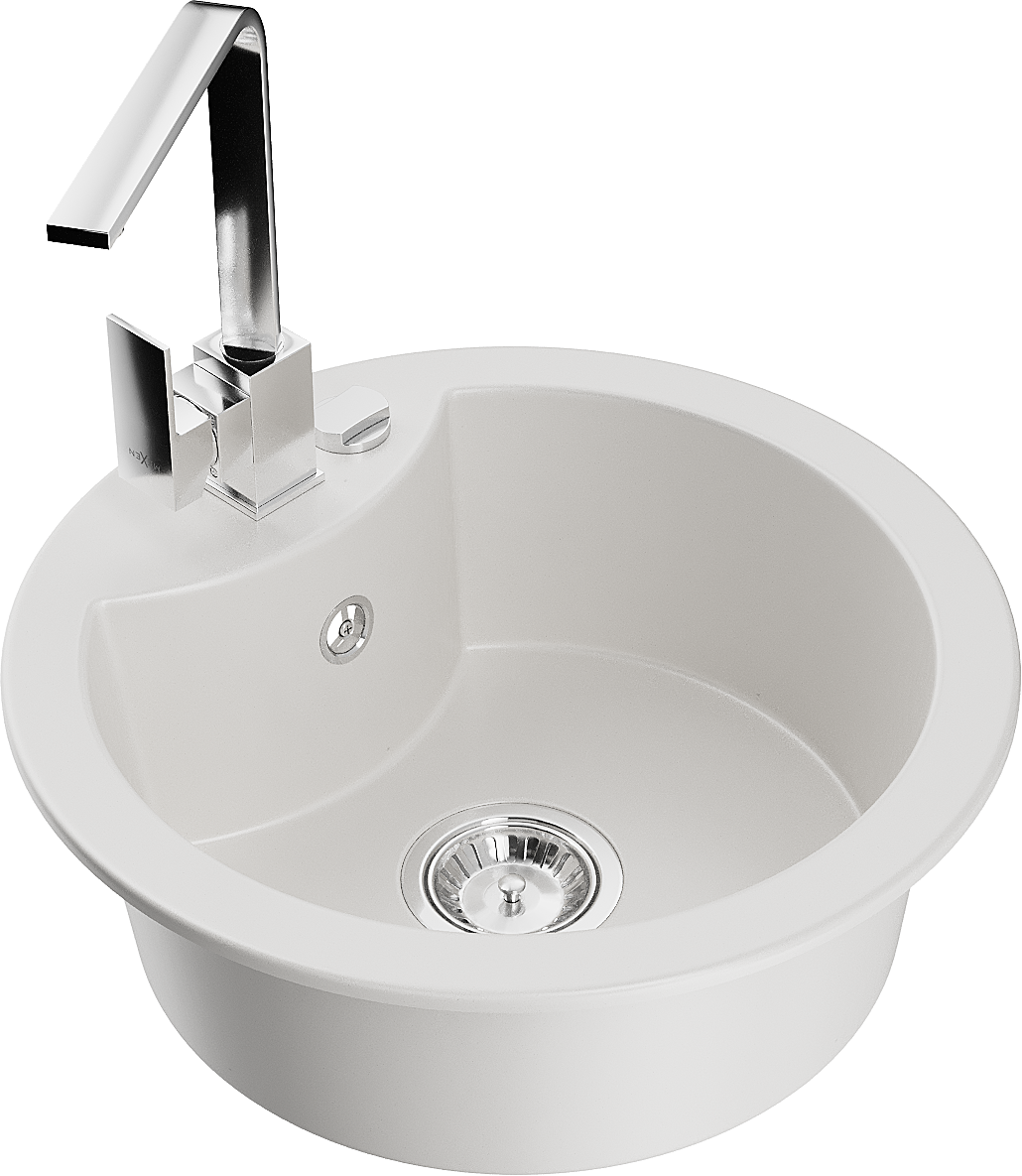 Mexen Diego granit izlietne ar 1 nodalījumu un virtuves jaucējkrānu Rita, balta - 6512-20-670300-00