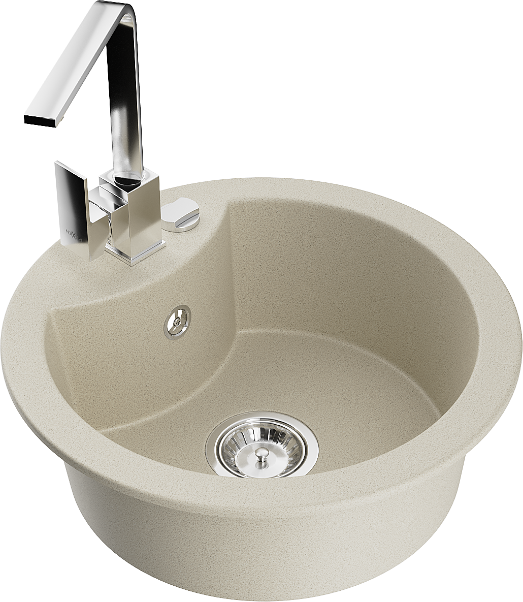 Mexen Diego granīta izlietne ar 1 nodalījumu un virtuves krānu Rita, bēša - 6512-69-670300-00