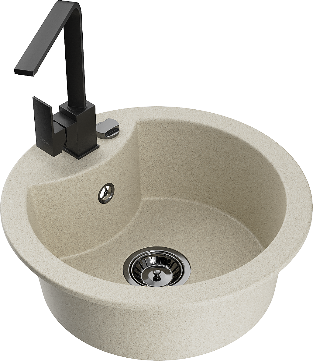 Mexen Diego grānīta izlietne ar vienu nodalījumu un virtuves jaucējkrānu Rita, bēša - 6512-69-670300-70