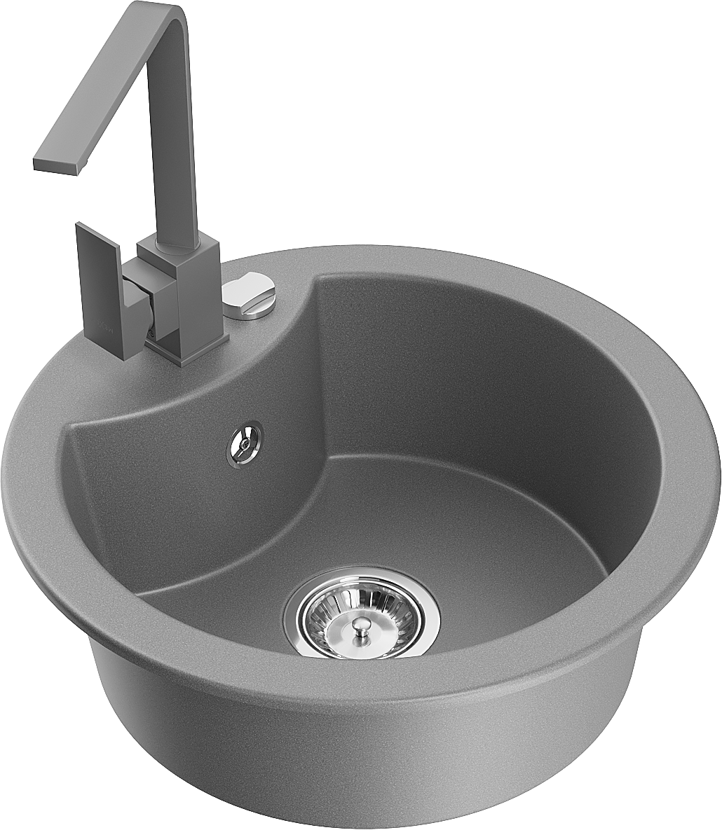 Mexen Diego granitais izlietne ar 1 nodalījumu un virtuves krānu Rita, pelēka - 6512-71-670300-71