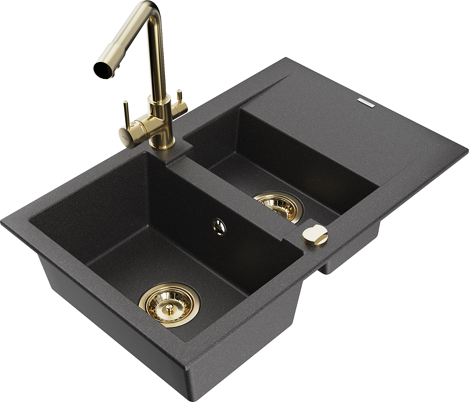 Mexen Gaspar granit izlietne 1,5 nodalījuma ar kanalizāciju un virtuves jaucējkrānu Duero, melns raibs - 6507-76-671600-50