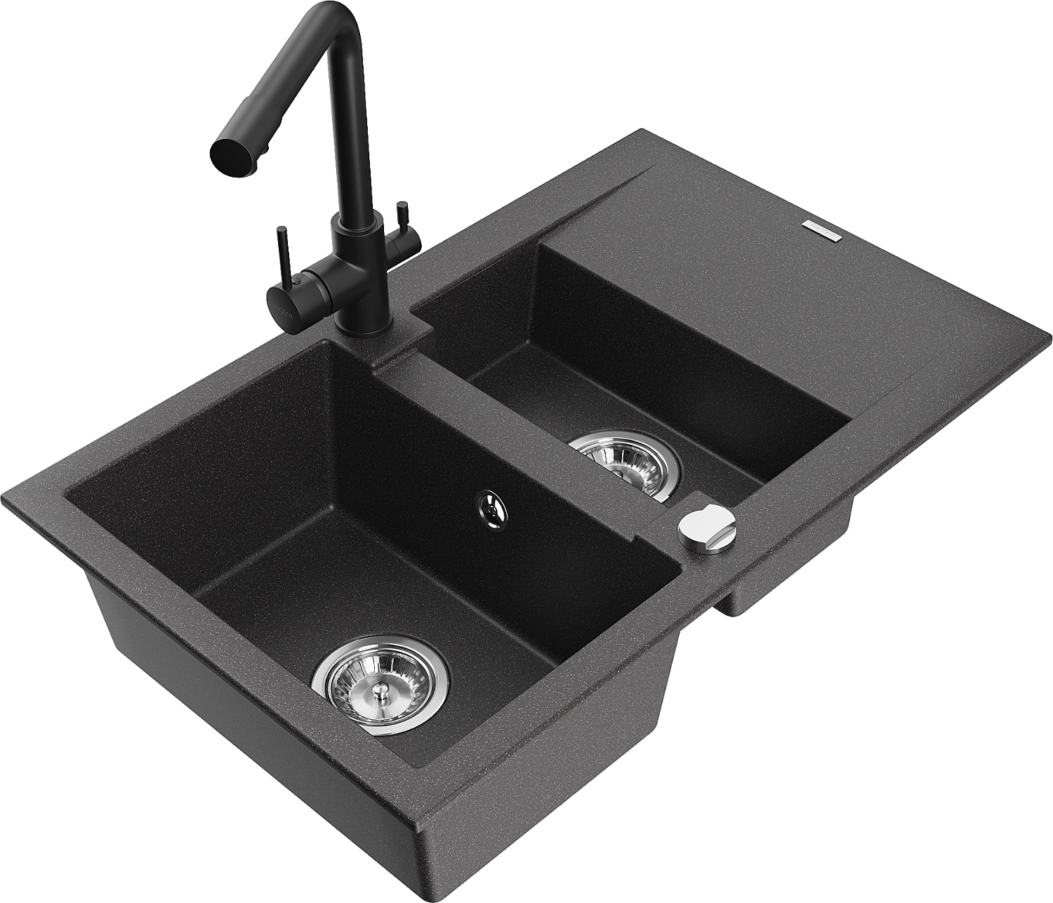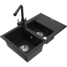 Mexen Gaspar 1,5 nodalījumu granīta izlietne ar noteci un Duero virtuves krānu, melns ar raibumiem - 6507-76-671600-70