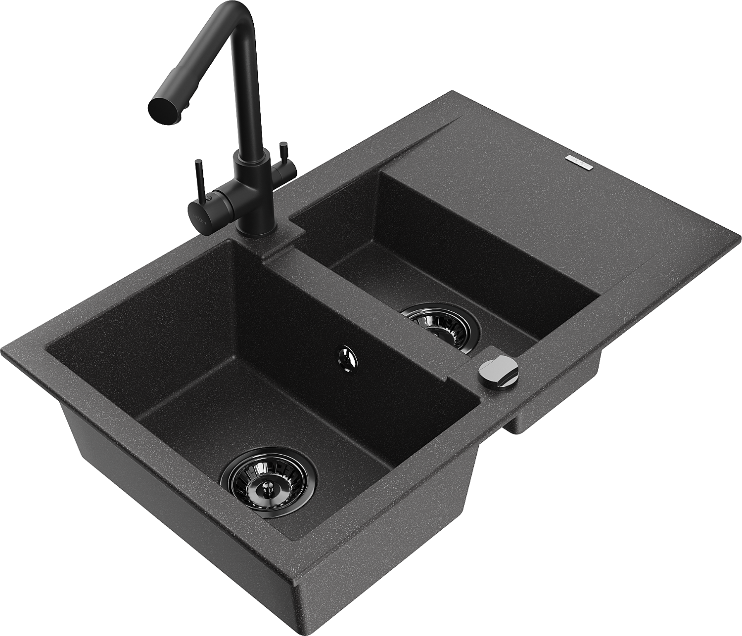 Mexen Gaspar granitizlietne 1,5-nodalā ar notekas un virtuves jaucējkrāns Duero, melns ar plankumiem - 6507-76-671600-70-B