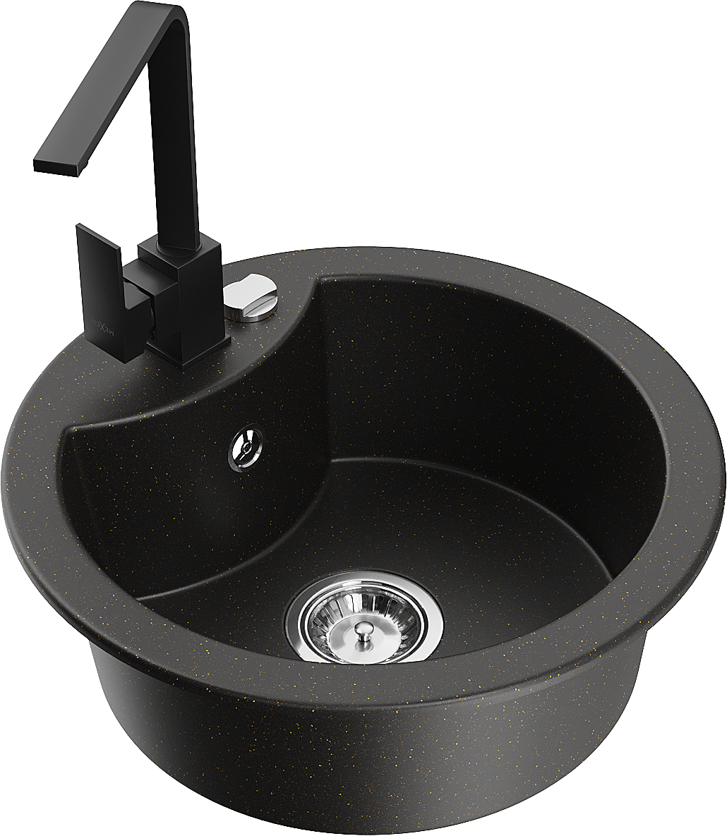 Mexen Diego granitā izlietne ar vienu nodalījumu un virtuves jaucējkrānu Rita, melna/zelta metālika - 6512-75-670300-70