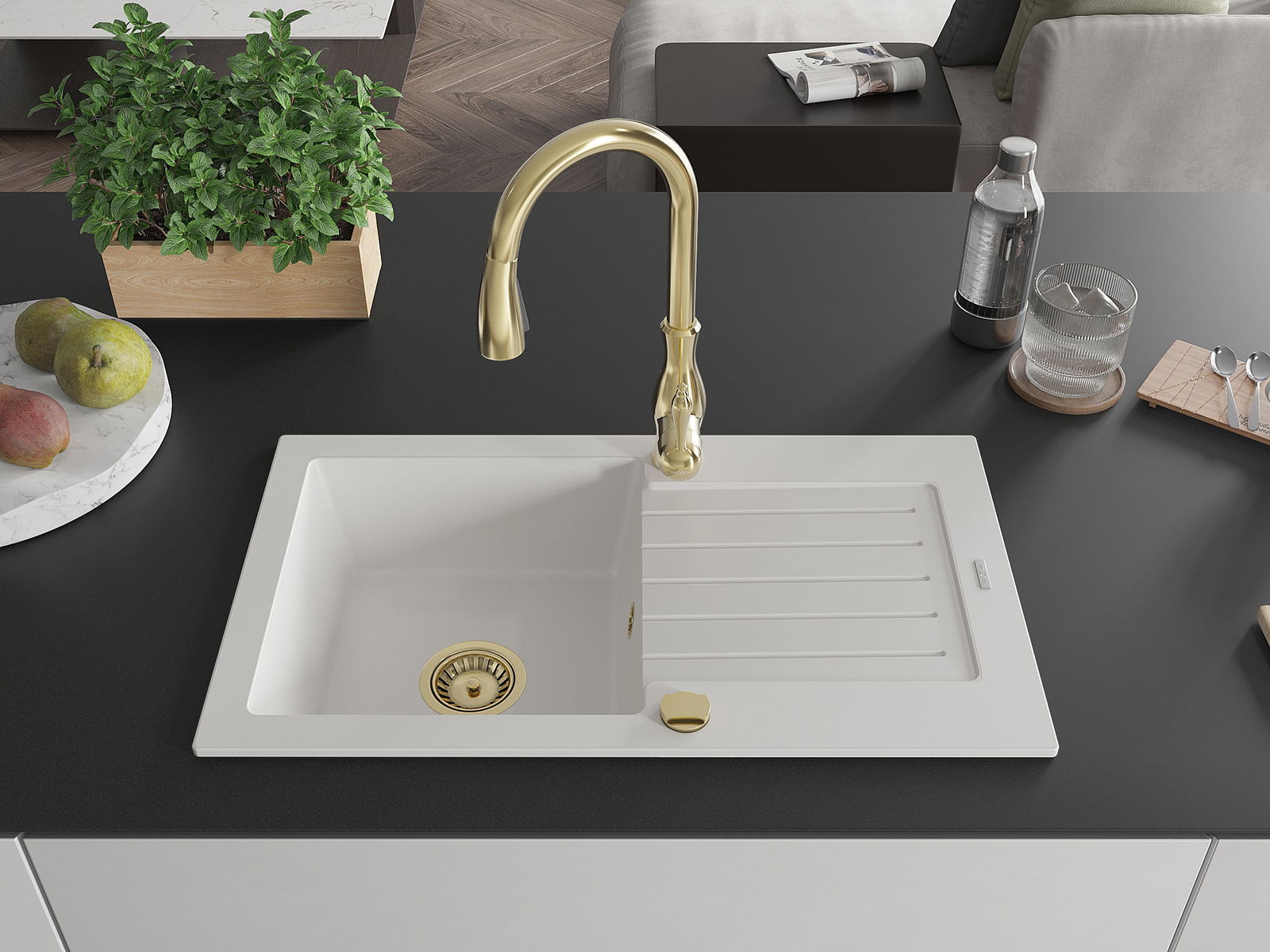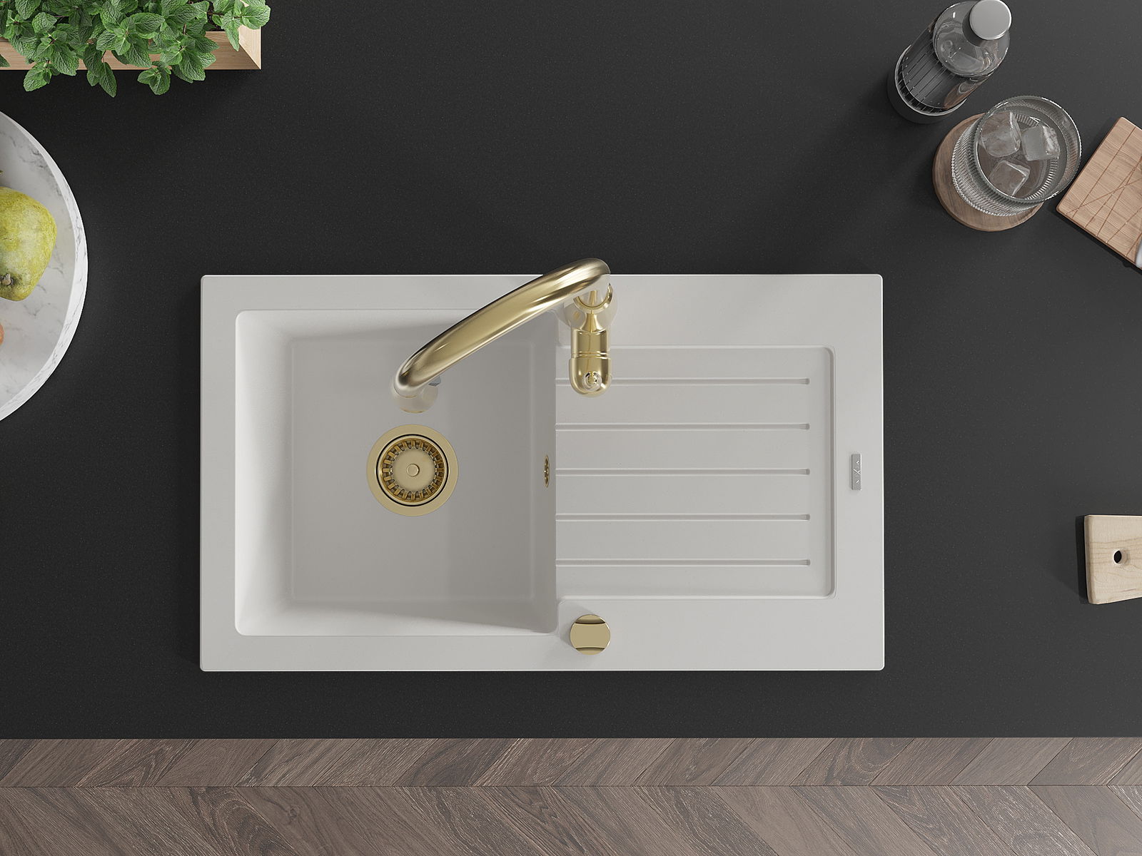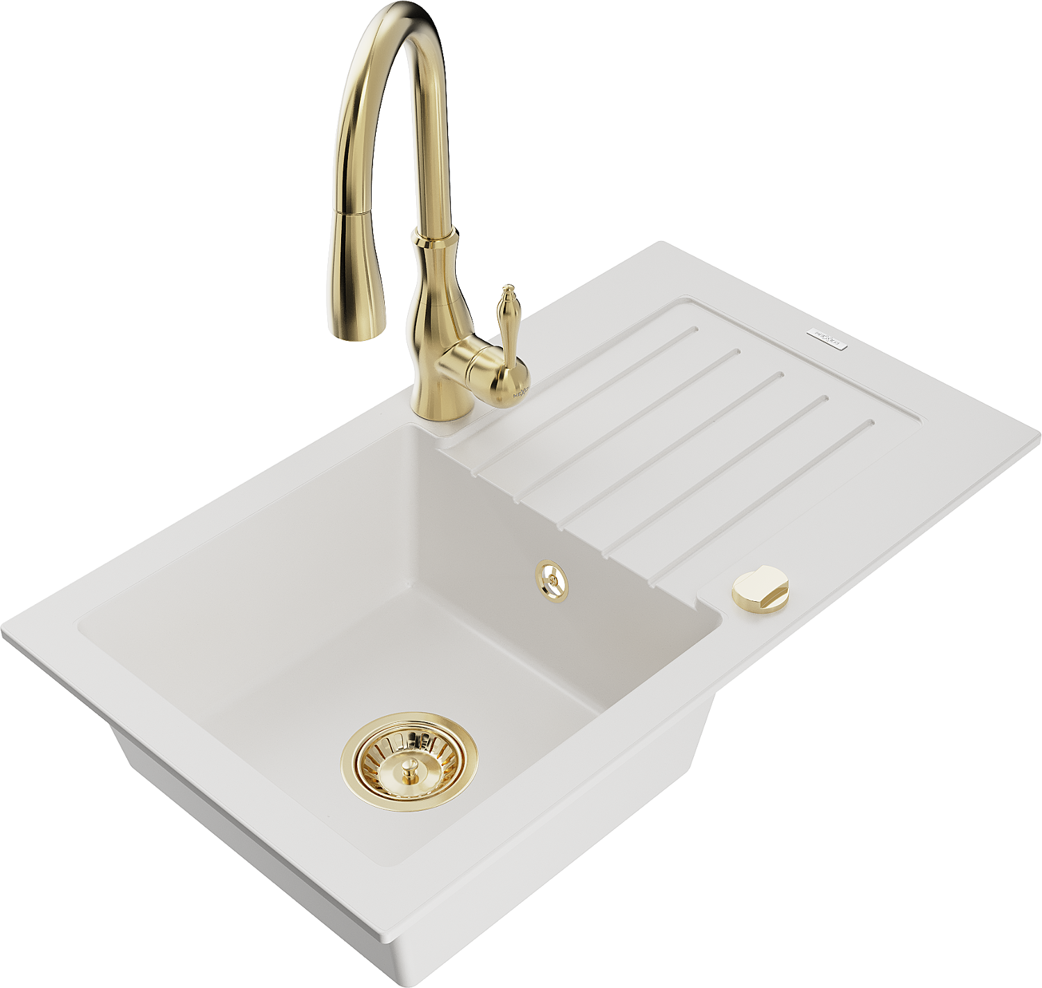 Mexen Pablo granitizlietne 1-kameru ar notecētavu un virtuves jaucējkrānu Savita, balts - 6510-20-672601-50