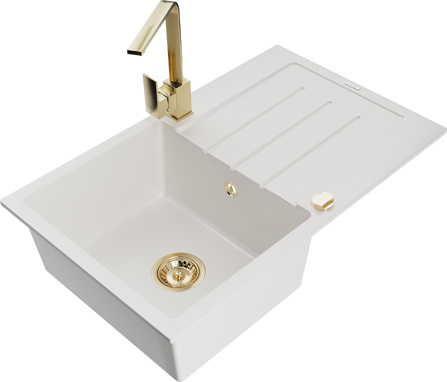 Mexen Bruno granitais izlietne ar 1 nodalījumu ar noteces un virtuves jaucējkrānu Rita, balta - 6513-20-670300-50