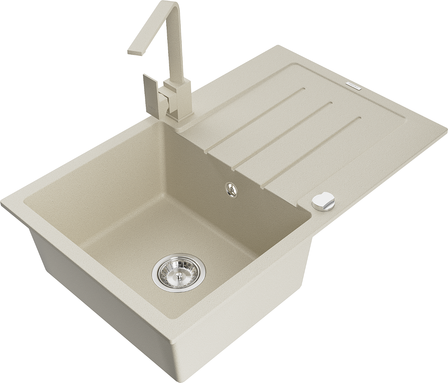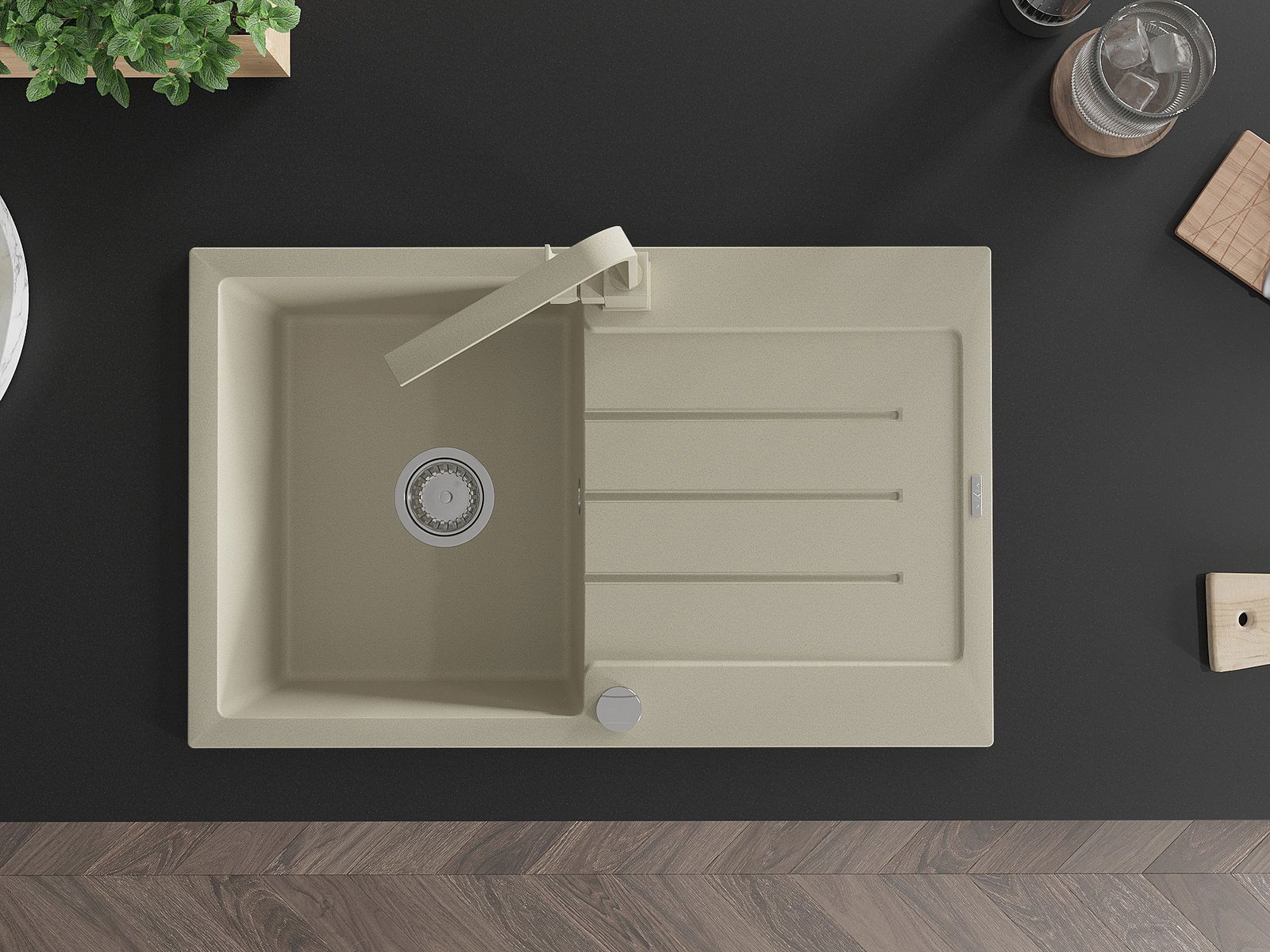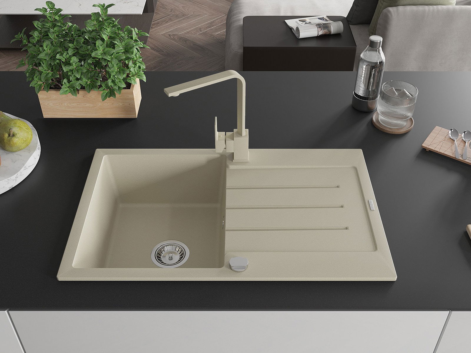 Mexen Bruno granīta izlietne ar vienu nodalījumu un noteces vietu un virtuves krānu Rita, bēša - 6513-69-670300-69