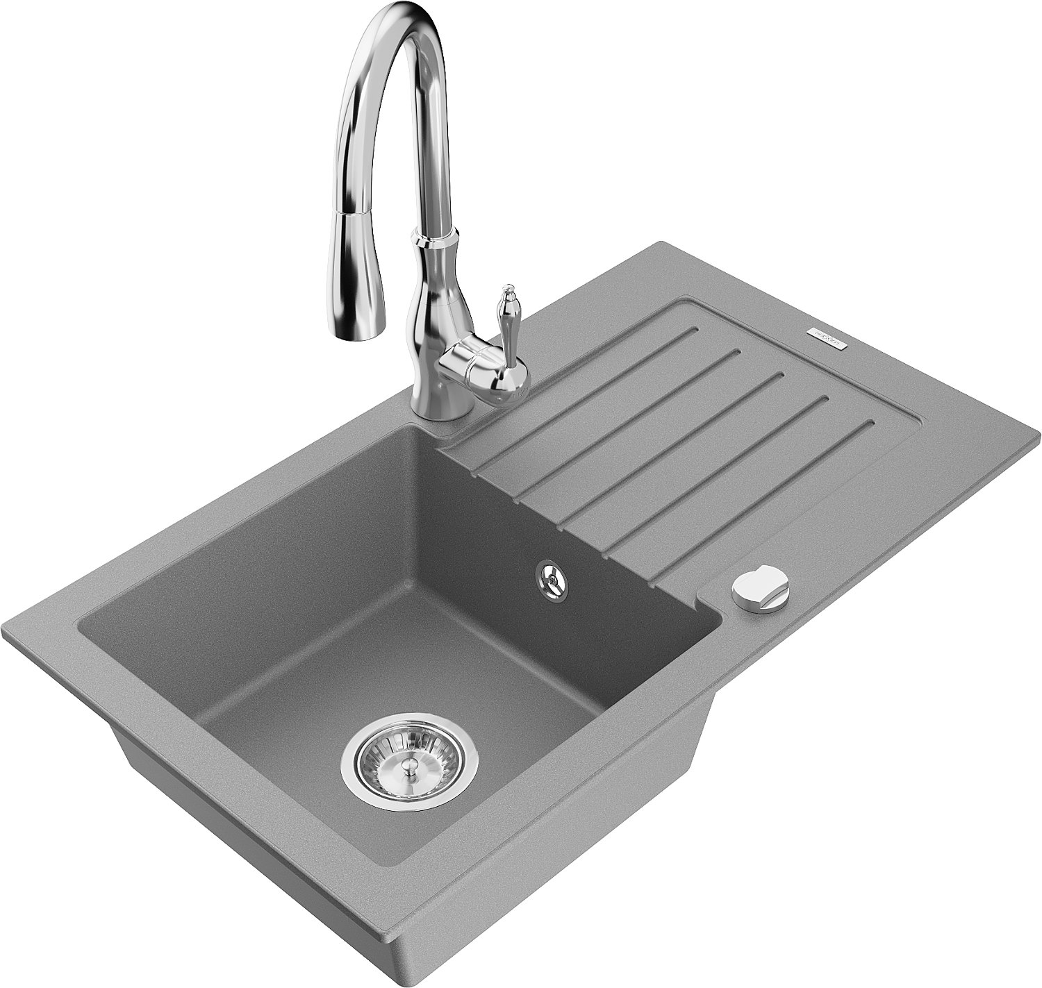Mexen Pablo granitizlietne ar vienu nodalījumu, novietni un virtuves jaucējkrānu Savita, pelēks - 6510-71-672601-00
