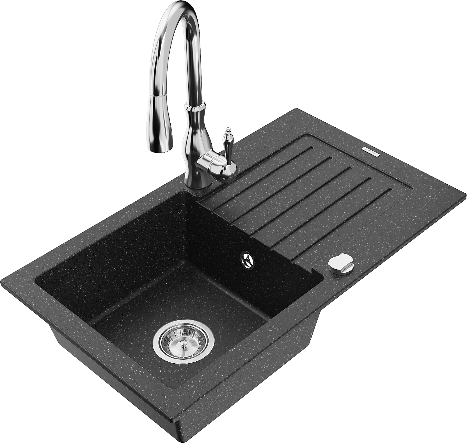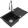 Mexen Pablo grants izlietne ar vienu nodalījumu, ar notecinātāju un virtuves jaucējkrānu Savita, melns/sudraba metālisks
