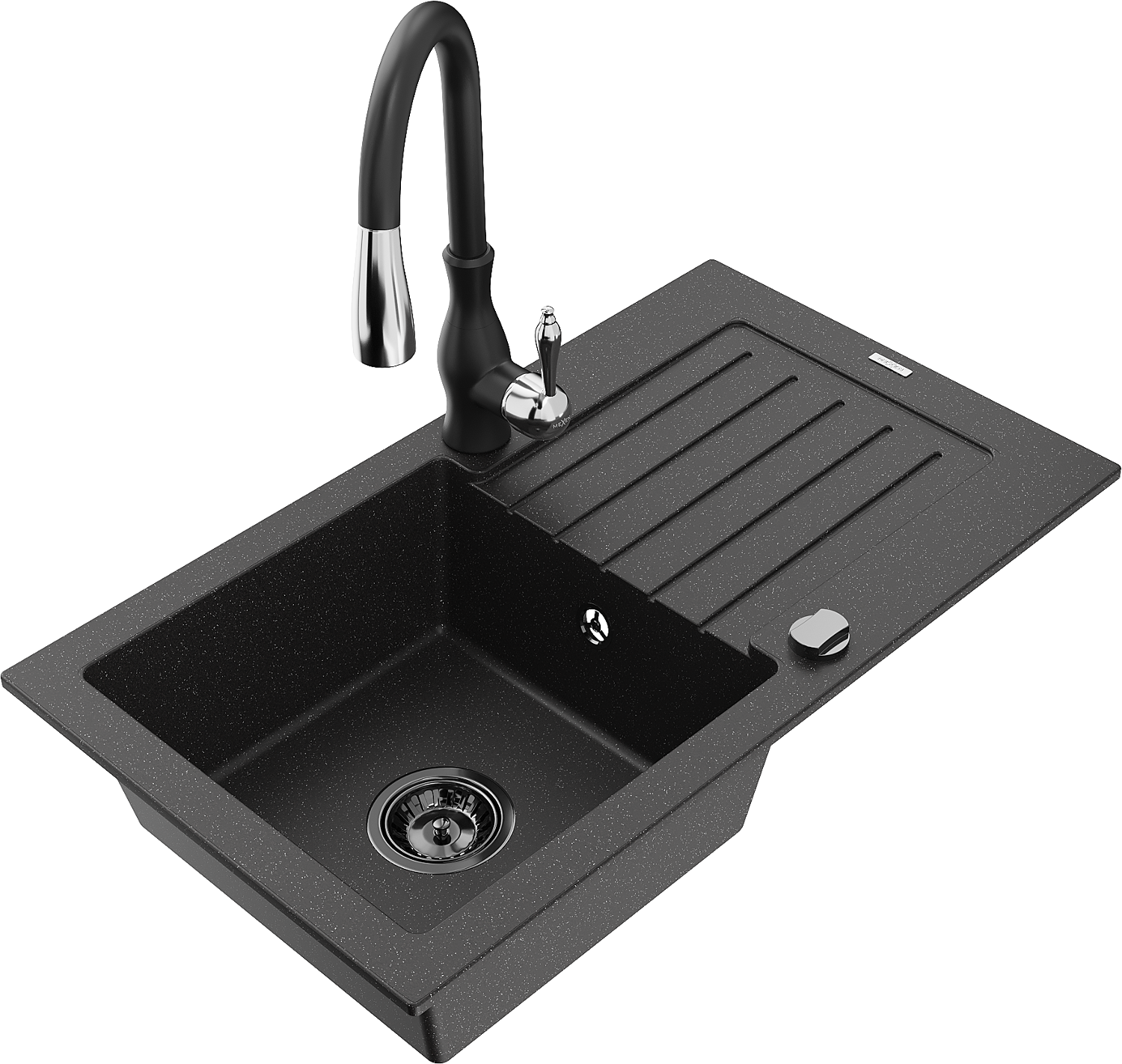 Mexen Pablo granitā izlietne ar vienu nodalījumu un noteku un virtuvs jaucējkrānu Savita, melna/sudraba - 6510-73-672601-70-B
