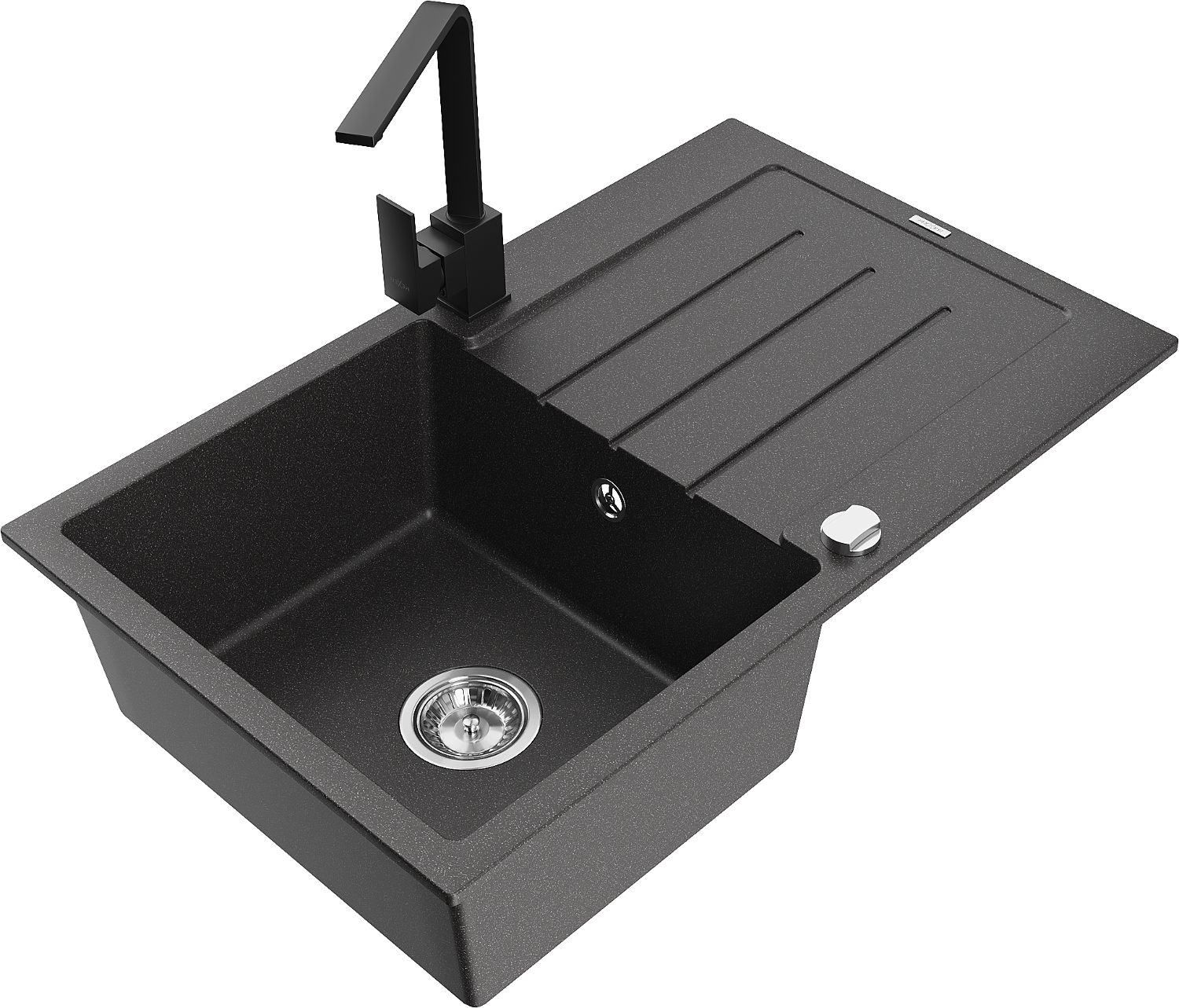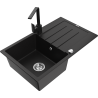 Mexen Bruno granta izlietne ar vienu nodalījumu, ūdens noteces plauktiņu un virtuves jaucējkrānu Rita, melna ar baltu