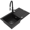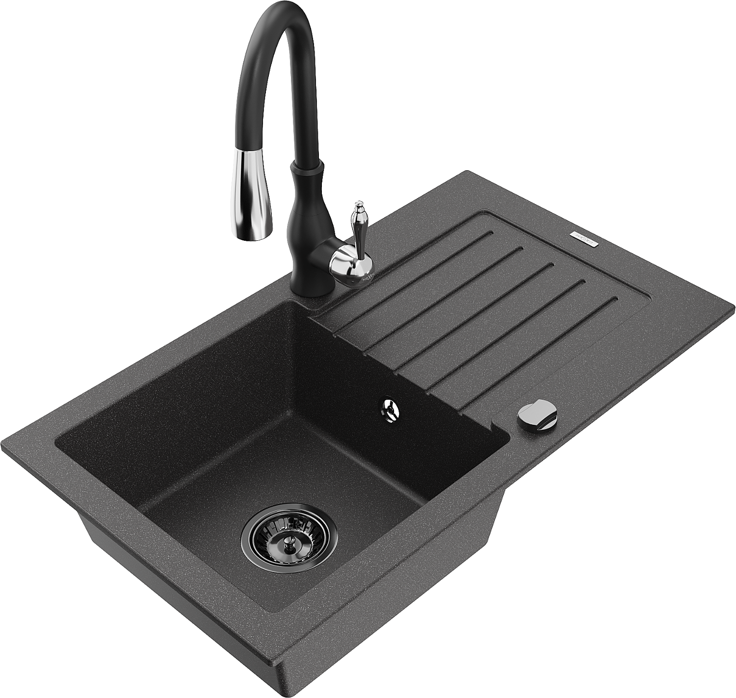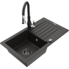 Mexen Pablo granitizlietne 1-kameras ar notecinātāju un virtuves jaucējkrānu Savita, melna ar plankumiem