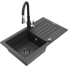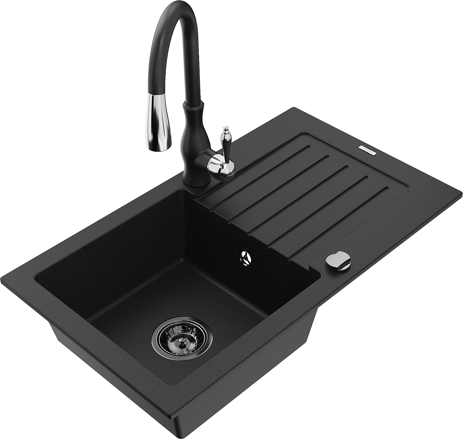 Mexen Pablo granit izlietne ar 1 nodalījumu, notekpaliktni un virtuves jaucējkrānu Savita, melna - 6510-77-672601-70-B
