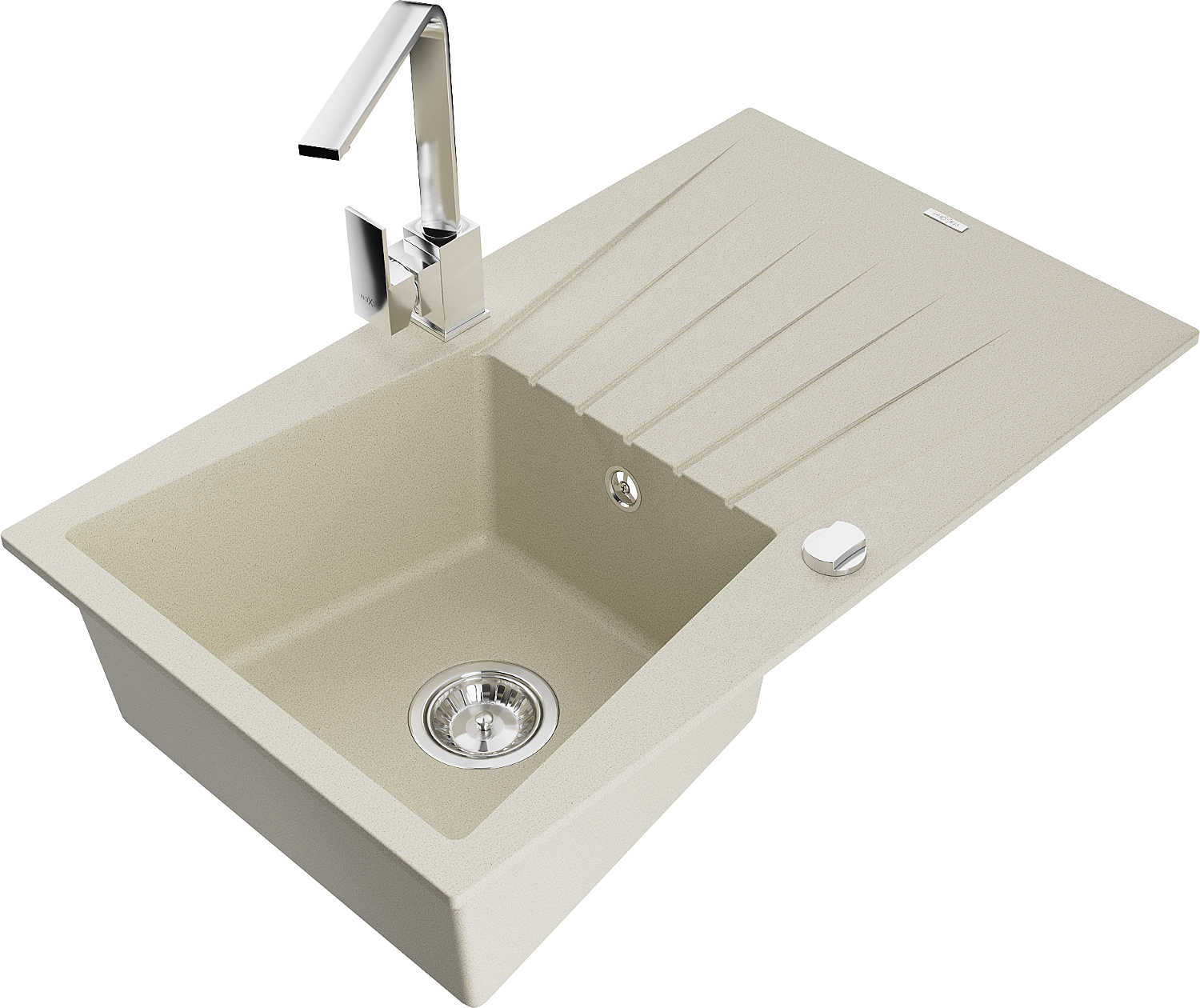 Mexen Cesar granitā izlietne ar vienu nodalījumu ar noteces vietu un virtuves maisītāju Rita, bēša - 6514-69-670300-00