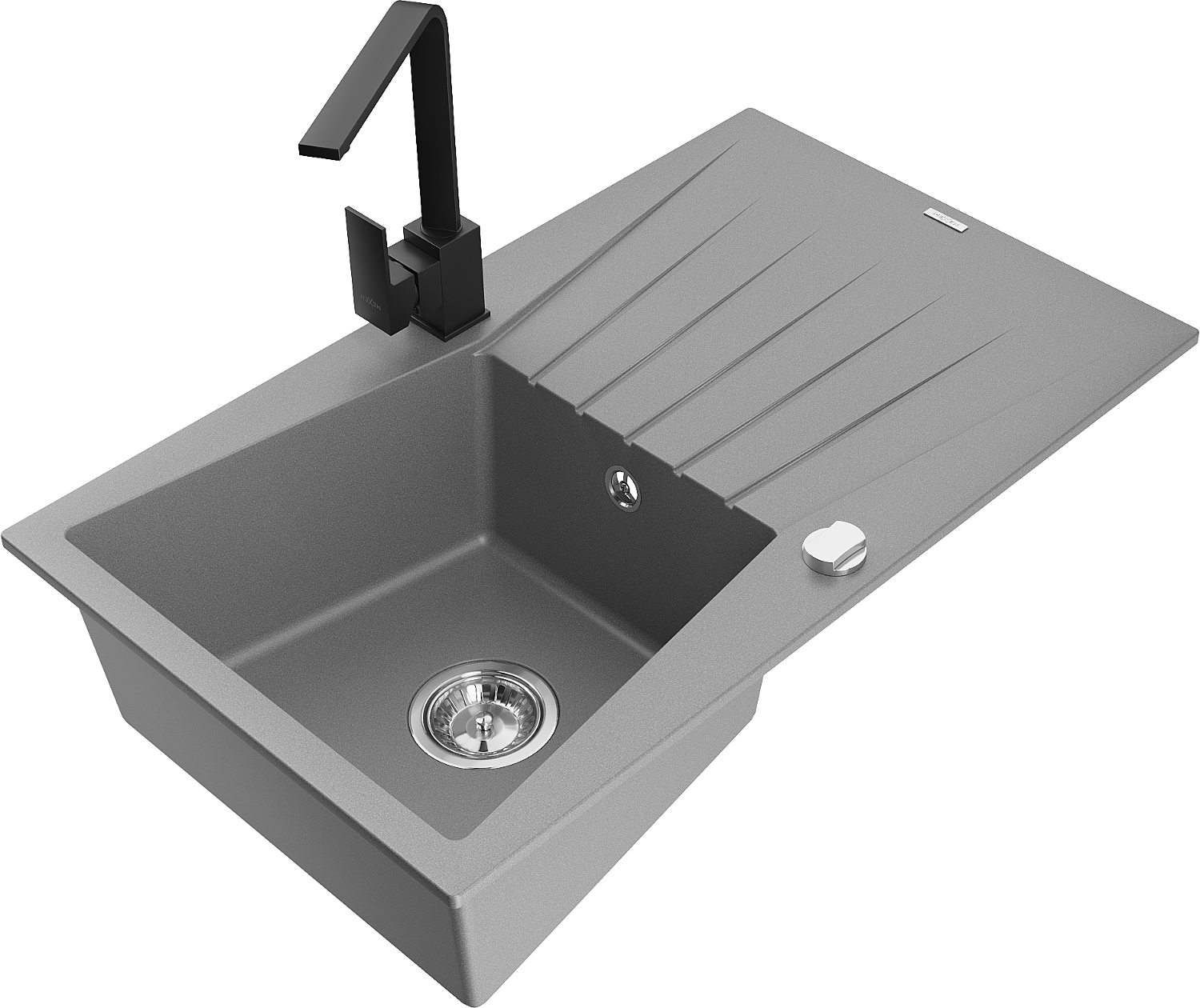 Mexen Cesar granīta izlietne ar vienu nodalījumu un noteces vietu un virtuve jaucējkrānu Rita, pelēks - 6514-71-670300-70