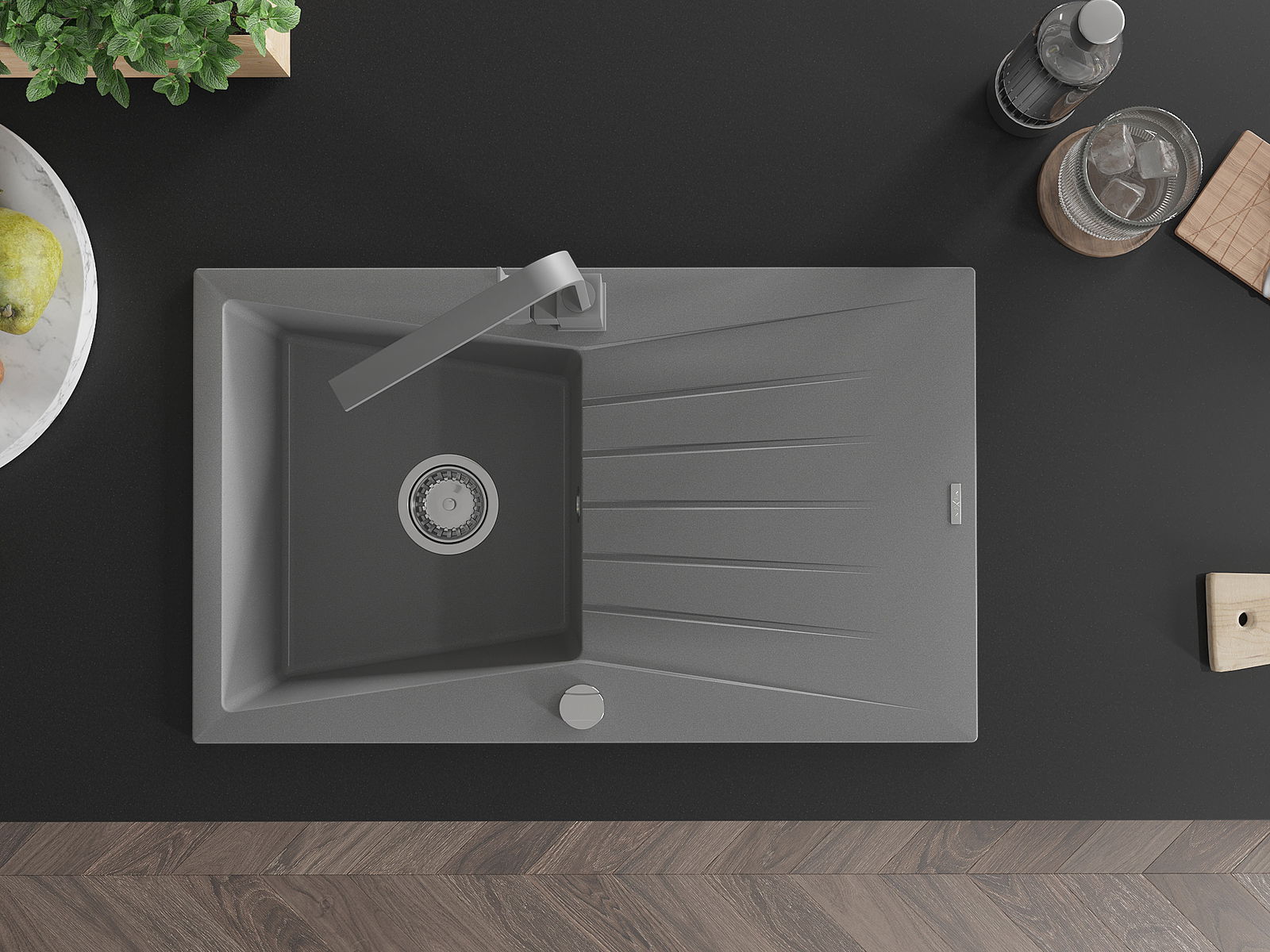 Mexen Cesar granitizlietne ar vienu nodalījumu un izžūšanas vietu un virtuves jaucējkrānu Rita, pelēks - 6514-71-670300-71