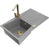 Mexen Cesar granit izlietne ar vienu nodalījumu, noteka un virtuves jaucējkrānu Rita, melna/sudraba metālika