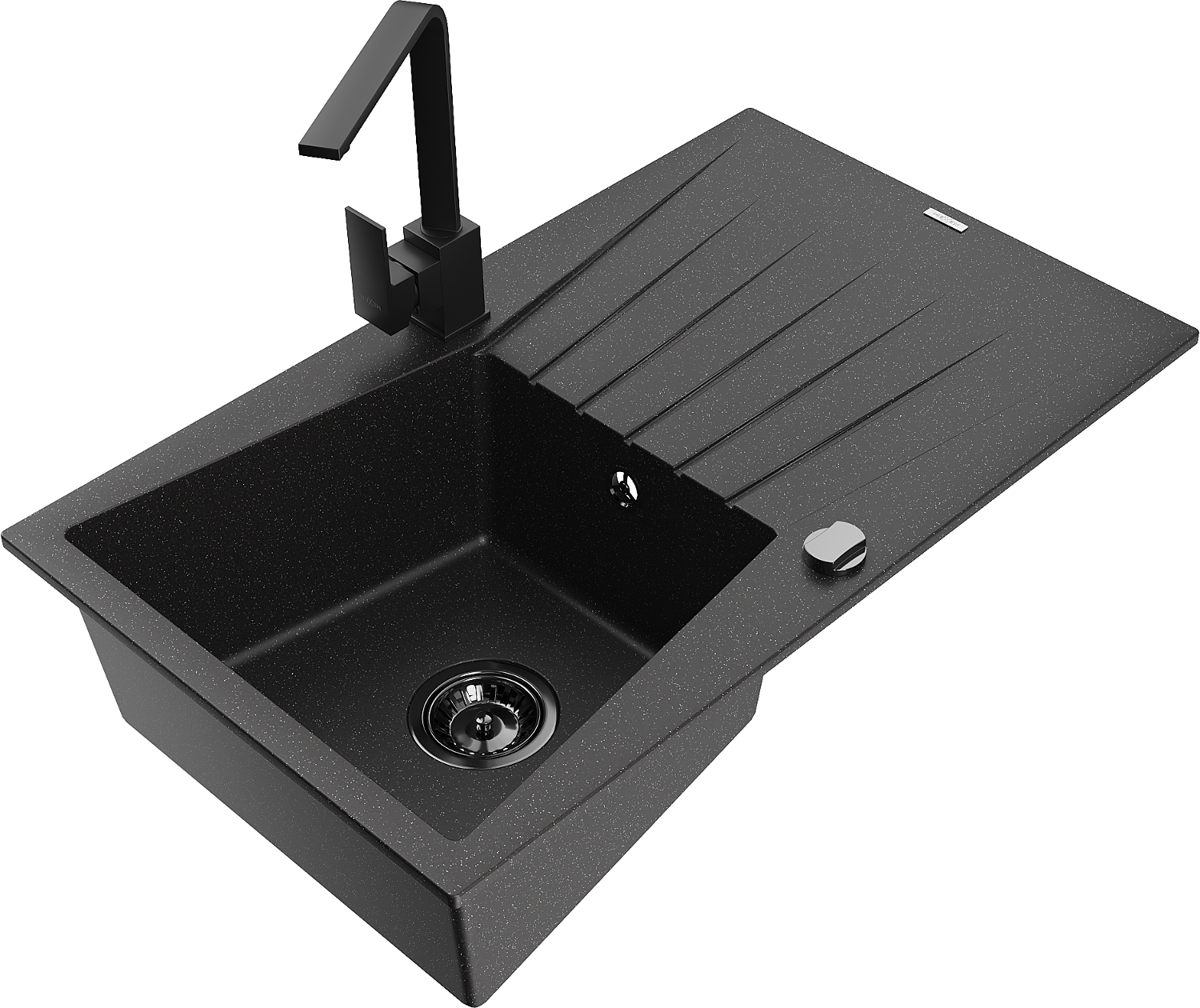 Mexen Cesar 1-nodal granīta izlietne ar notekpaplāti un Rita virtuves jaucējkrānu, melna/sudraba metālika - 6514-73-670300-70-B