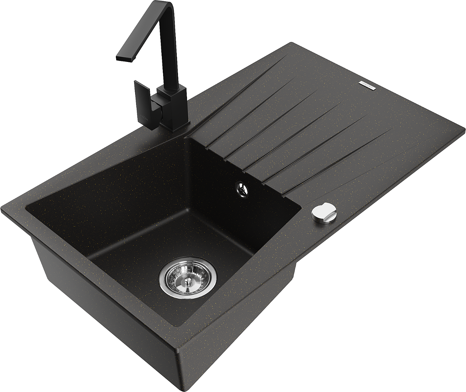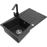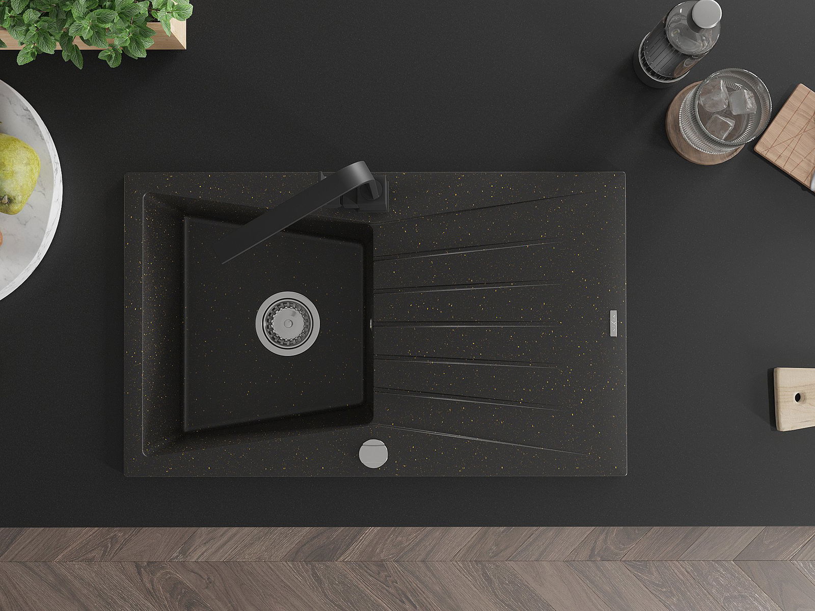 Mexen Cesar vienas lielums granīta izlietne ar drenāžas un virtuves krānu Rita, melns/zelta metāliskais - 6514-75-670300-70