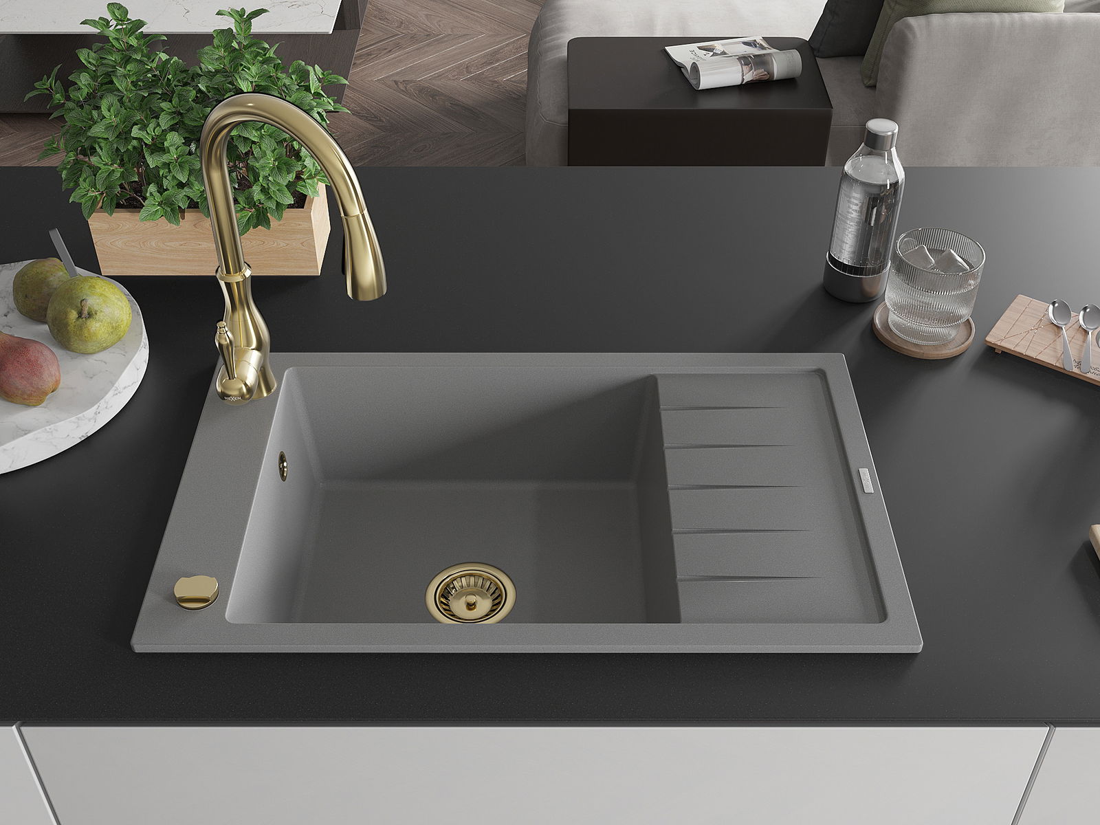 Mexen Elias granitizlietne 1-kameru ar noteku un virtuves jaucējkrānu Savita, pelēks - 6511-71-672601-50