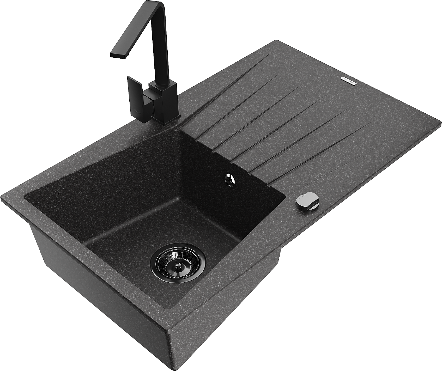 Mexen Cesar granitizlietne 1-nodalne ar notekas un virtuves jaucējkrānu Rita, melns ar traipiem - 6514-76-670300-70-B