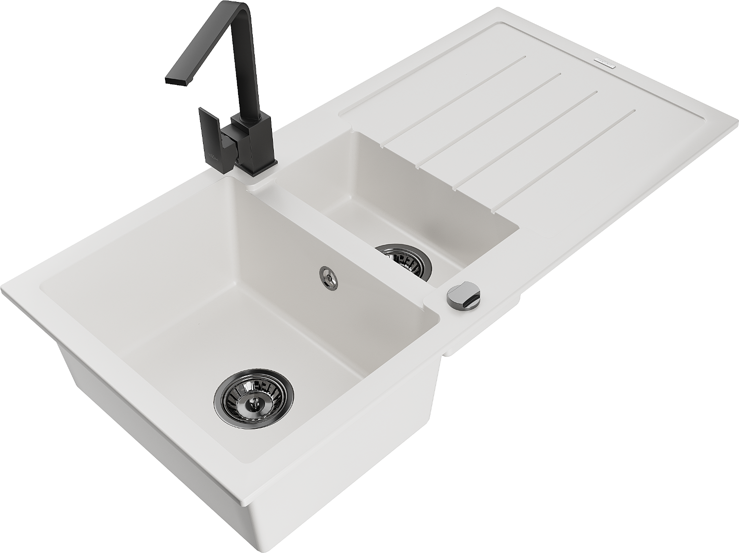 Mexen Andres granitā izlietne 1,5 nodalījumi ar notecinātāju un virtuves jaucējkrānu Rita, balts - 6515-20-670300-70