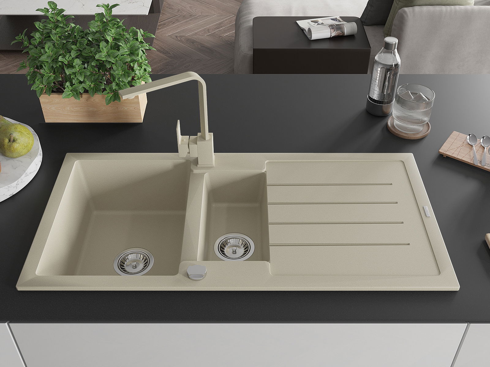 Izlietnes virsma ir izturīga pret traipiem un krāsas izmaiņām, tāpēc to ir viegli uzturēt tīru un tā saglabā savu krāsu ilgu lietošanas laiku. Estētiski un praktiski papildina jebkuru virtuvi.
