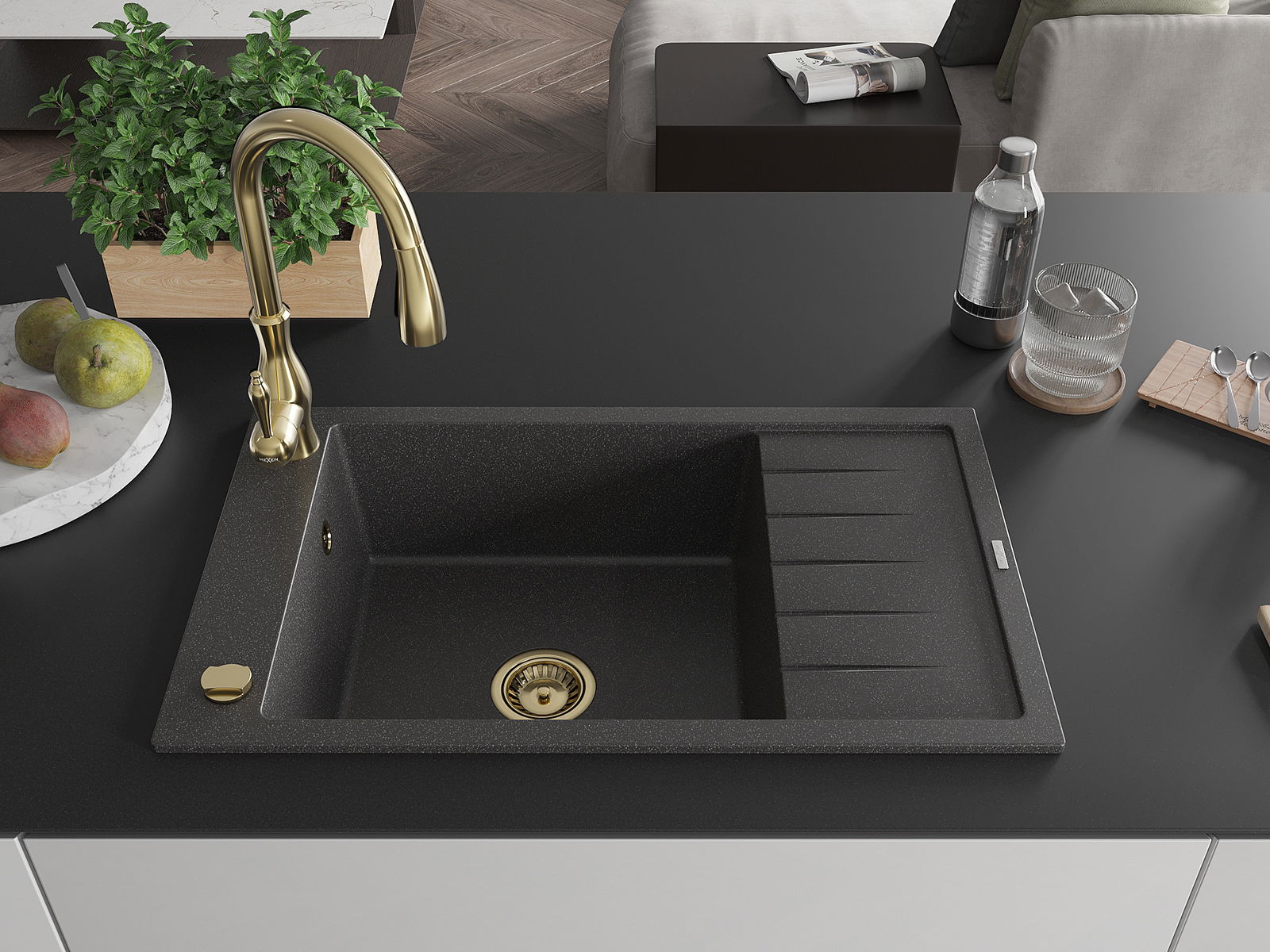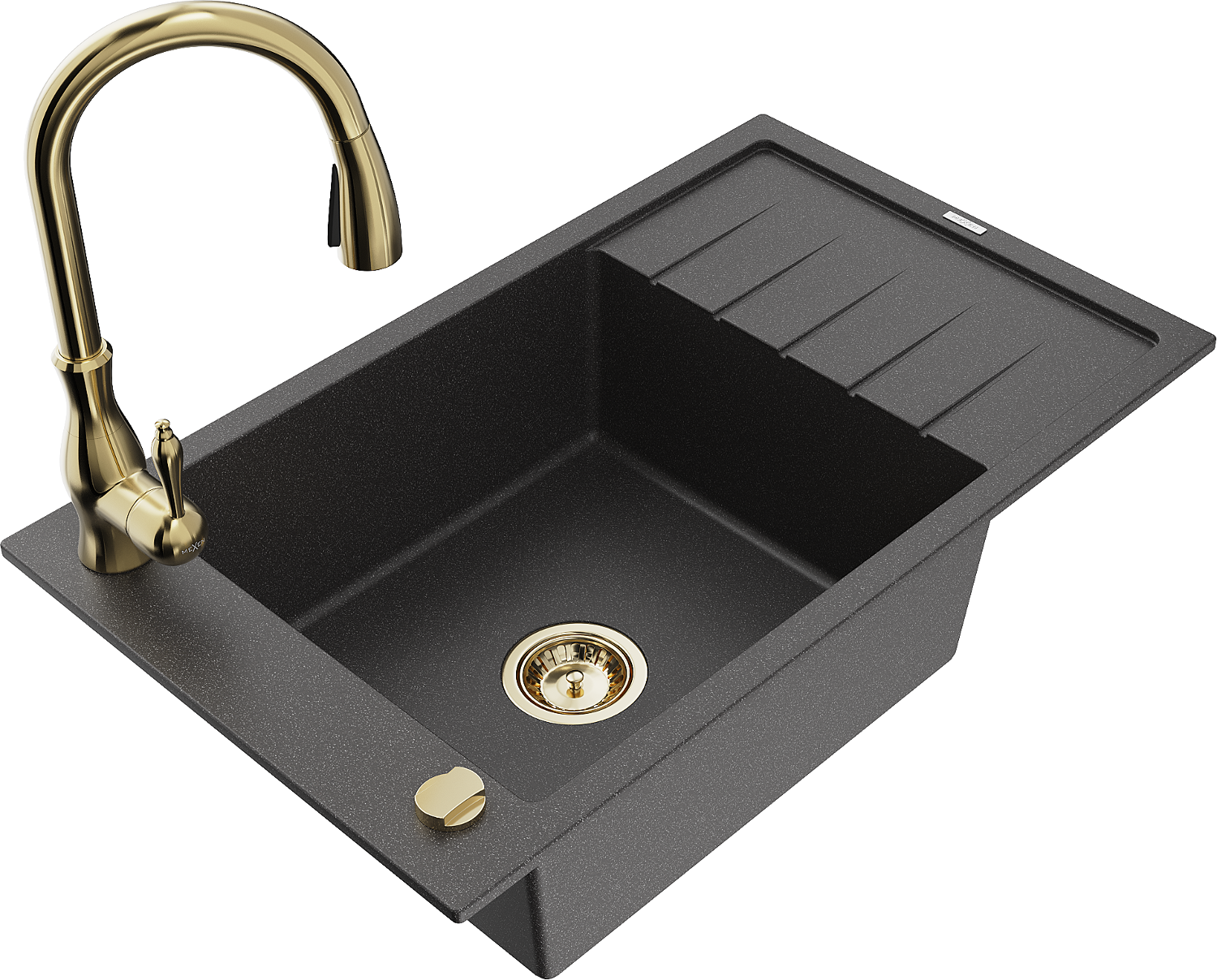 Mexen Elias granitizlietne 1 nodalījumu ar noteku un virtuves jaucējkrānu Savita, melns ar punktiem - 6511-76-672601-50