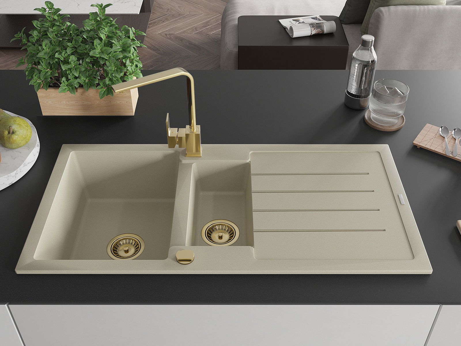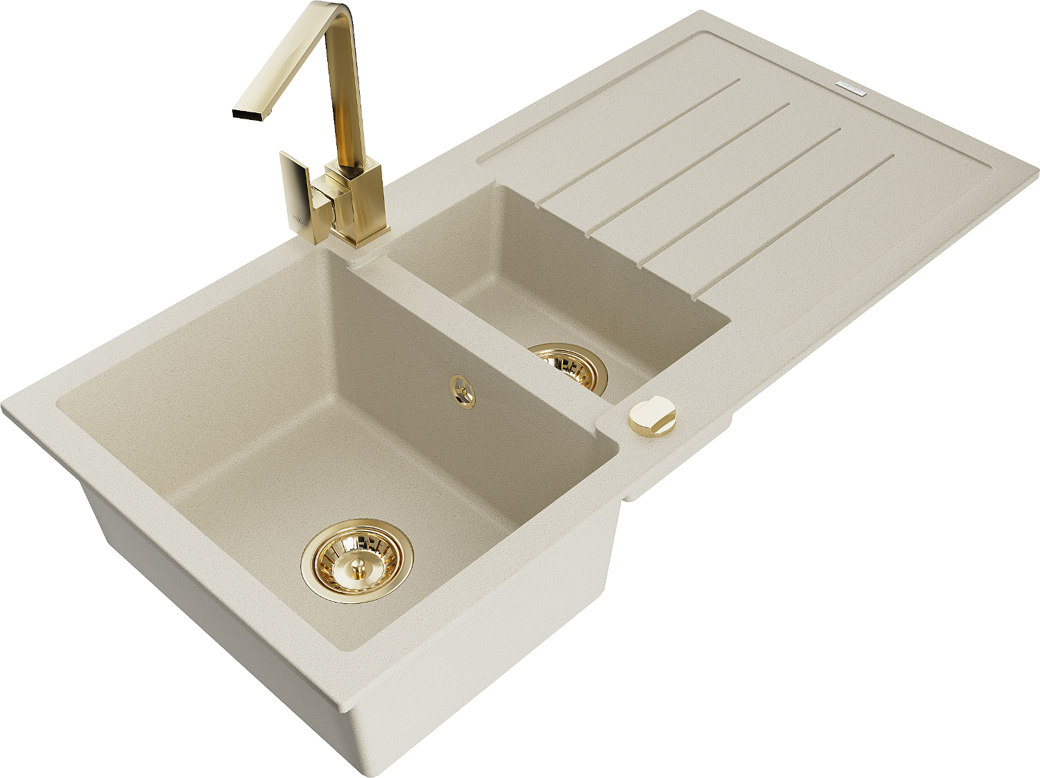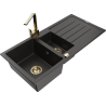 Mexen Andres granīta izlietne ar 1,5 nodalījumiem, ar notecēšanas rievu un virtuves jaucēkrānu Rita, bēša - 6515-69-670300-50