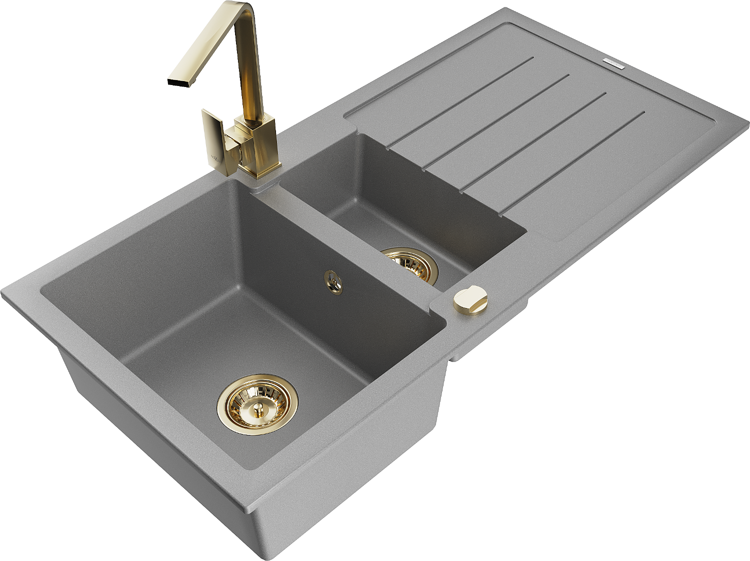 Mexen Andres granitē izlietne ar 1,5 nodalījumu, ar notecinātāju un virtuve jaucējkrānu Rita, pelēks - 6515-71-670300-50
