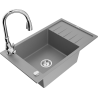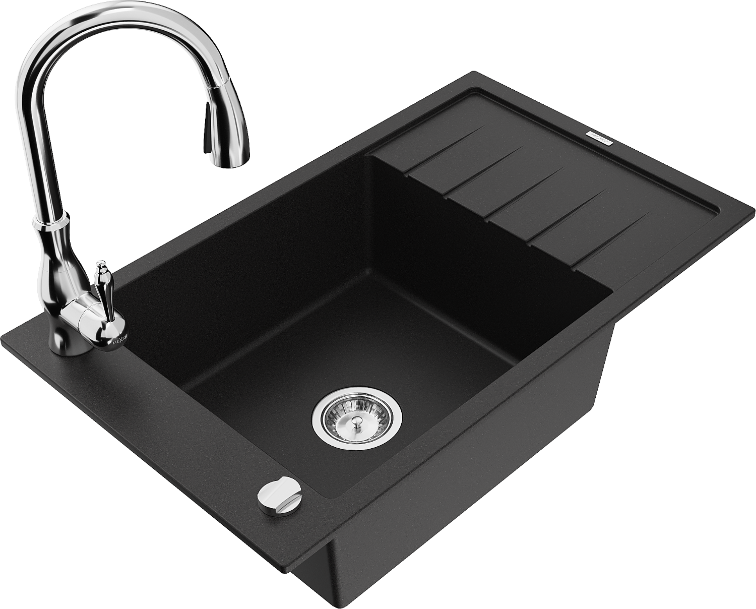 Mexen Elias granīta izlietne ar vienu nodalījumu, notekpaplāti un virtuves jaucējkrānu Savita, melna - 6511-77-672601-00