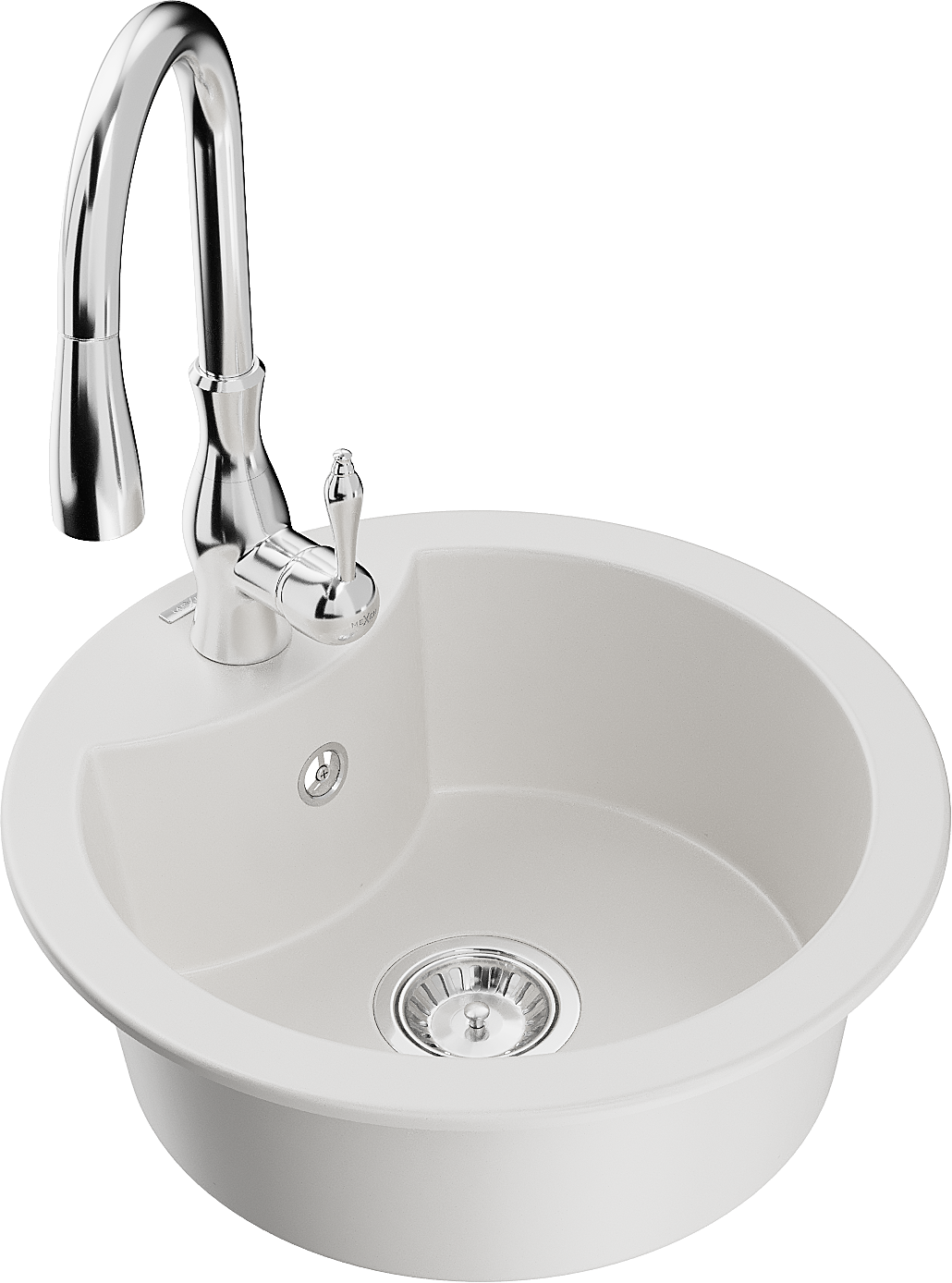 Mexen Diego vienkameras granīta izlietne ar virtuves jaucējkrānu Savita, balta - 6512-20-672601-00