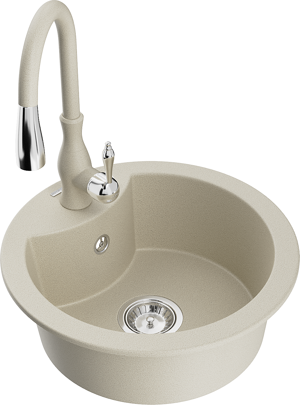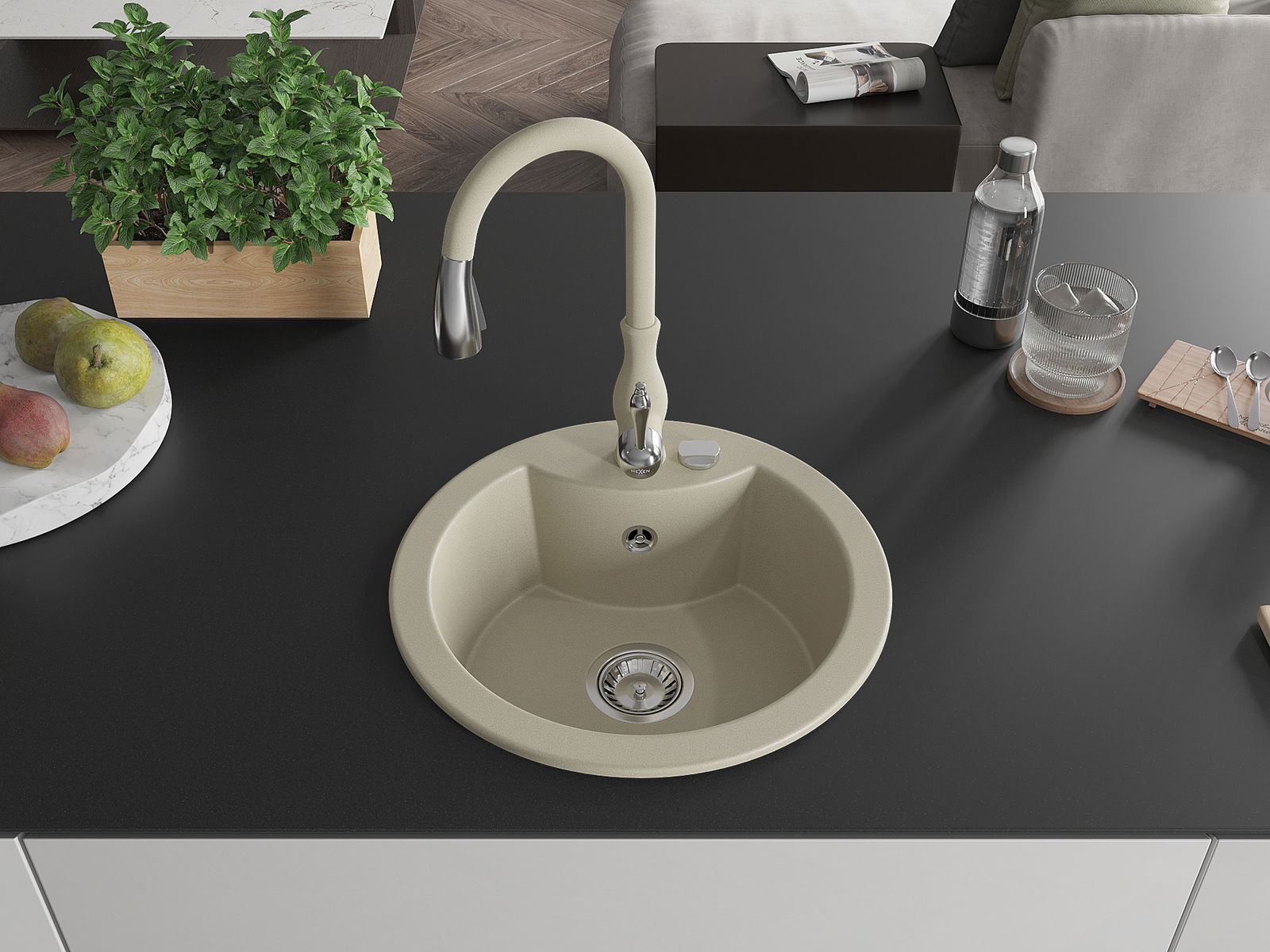 Mexen Diego granitizlietne 1-kameruļturetājs ar virtuvēm un jaucējkrānu Savita, bēšs - 6512-69-672601-69
