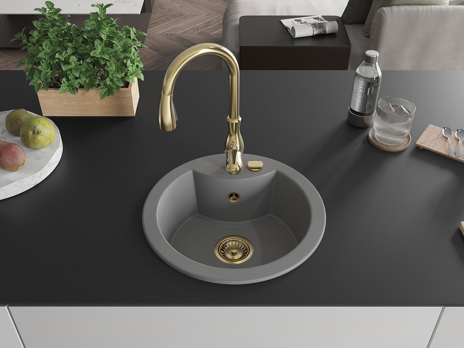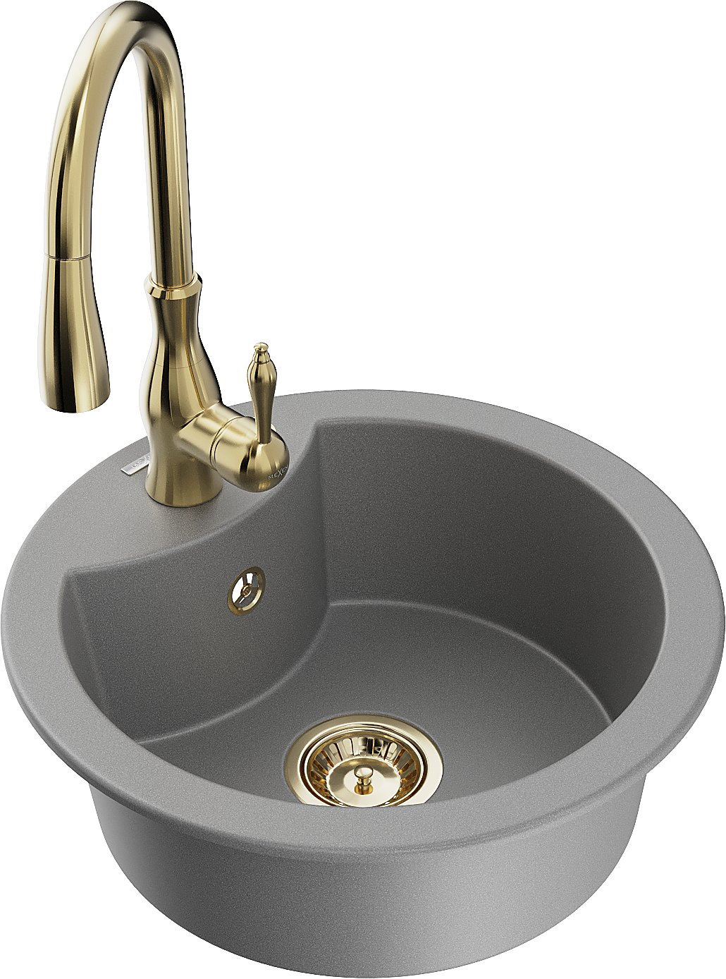 Mexen Diego granitā izlietne ar vienu nodalījumu un virtuves jaucējkrānu Savita, pelēka - 6512-71-672601-50