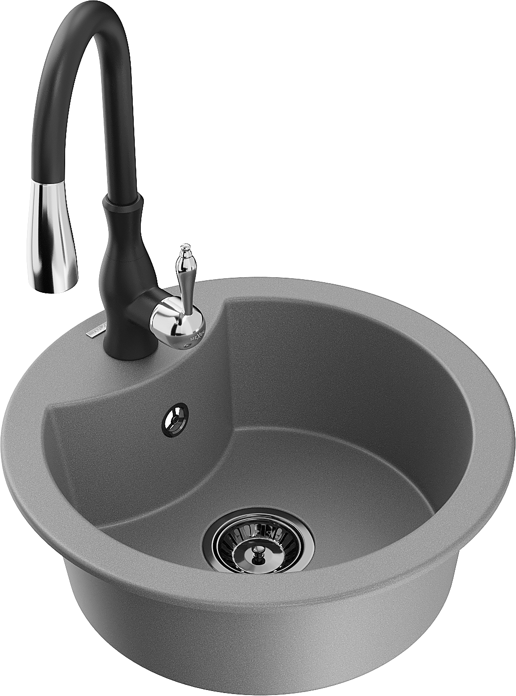 Mexen Diego granitē izlietne ar vienu nodalījumu un virtuves jaucējkrānu Savita, pelēka - 6512-71-672601-70-B