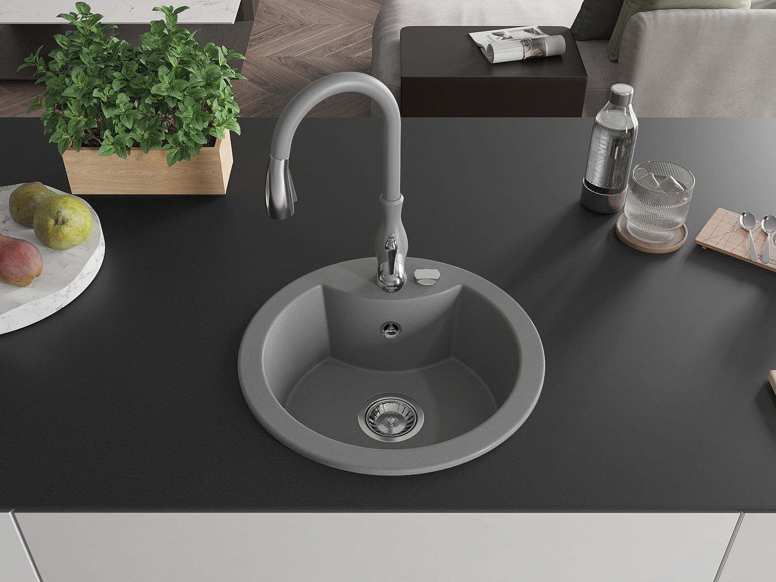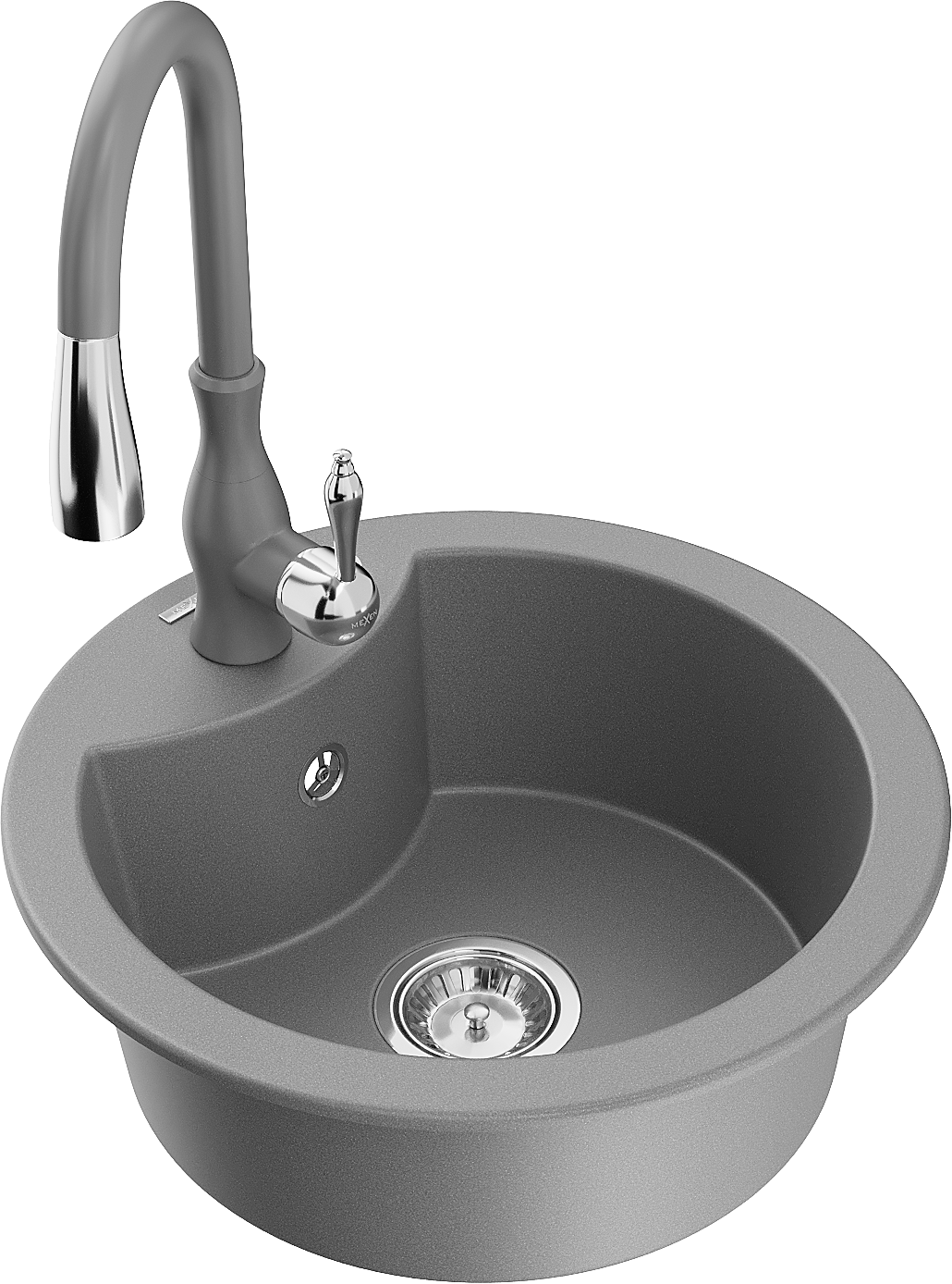 Mexen Diego granitāra virtuves izlietne ar vienu nodalījumu un virtuves jaucējkrānu Savita, pelēka - 6512-71-672601-71