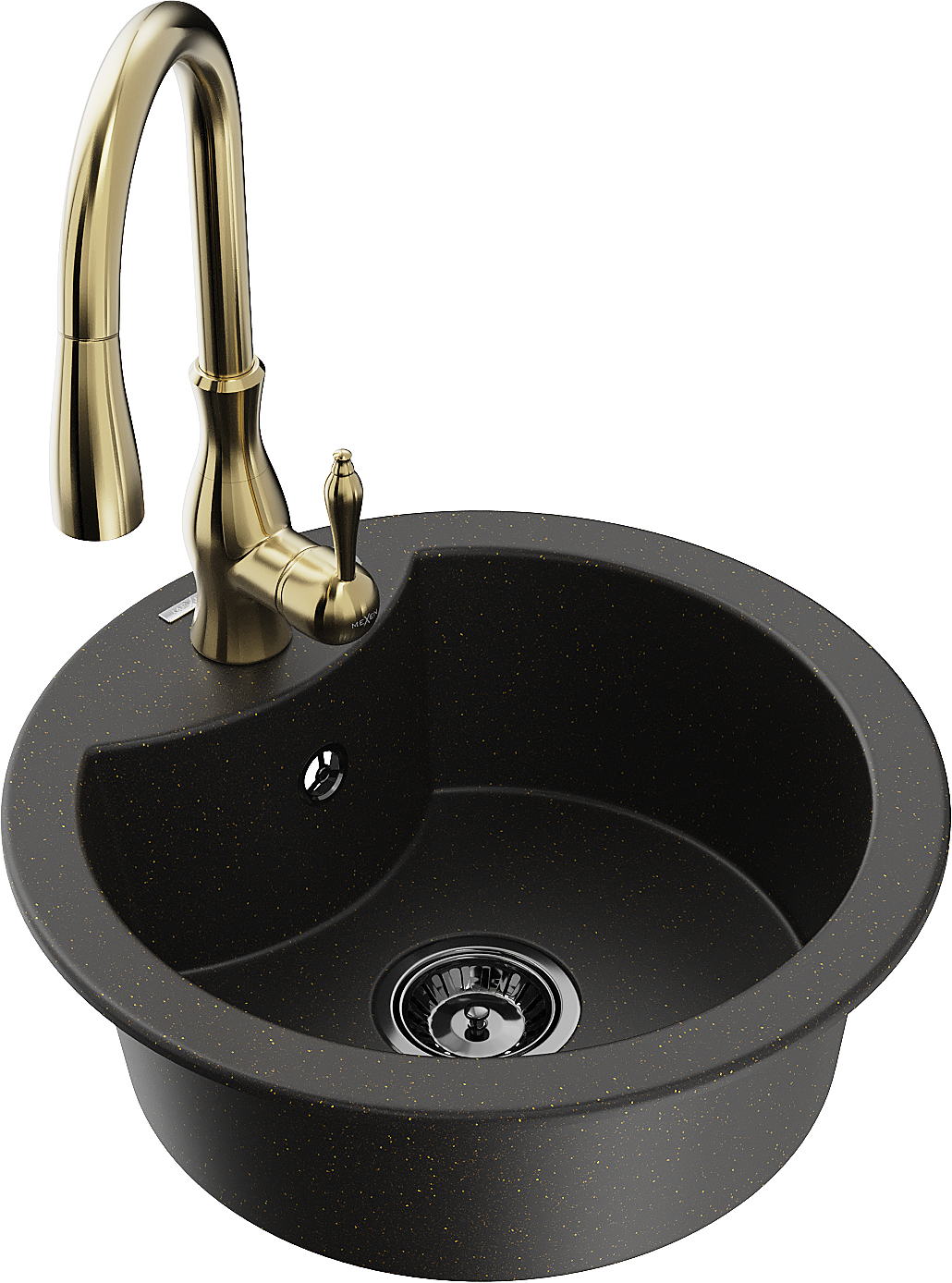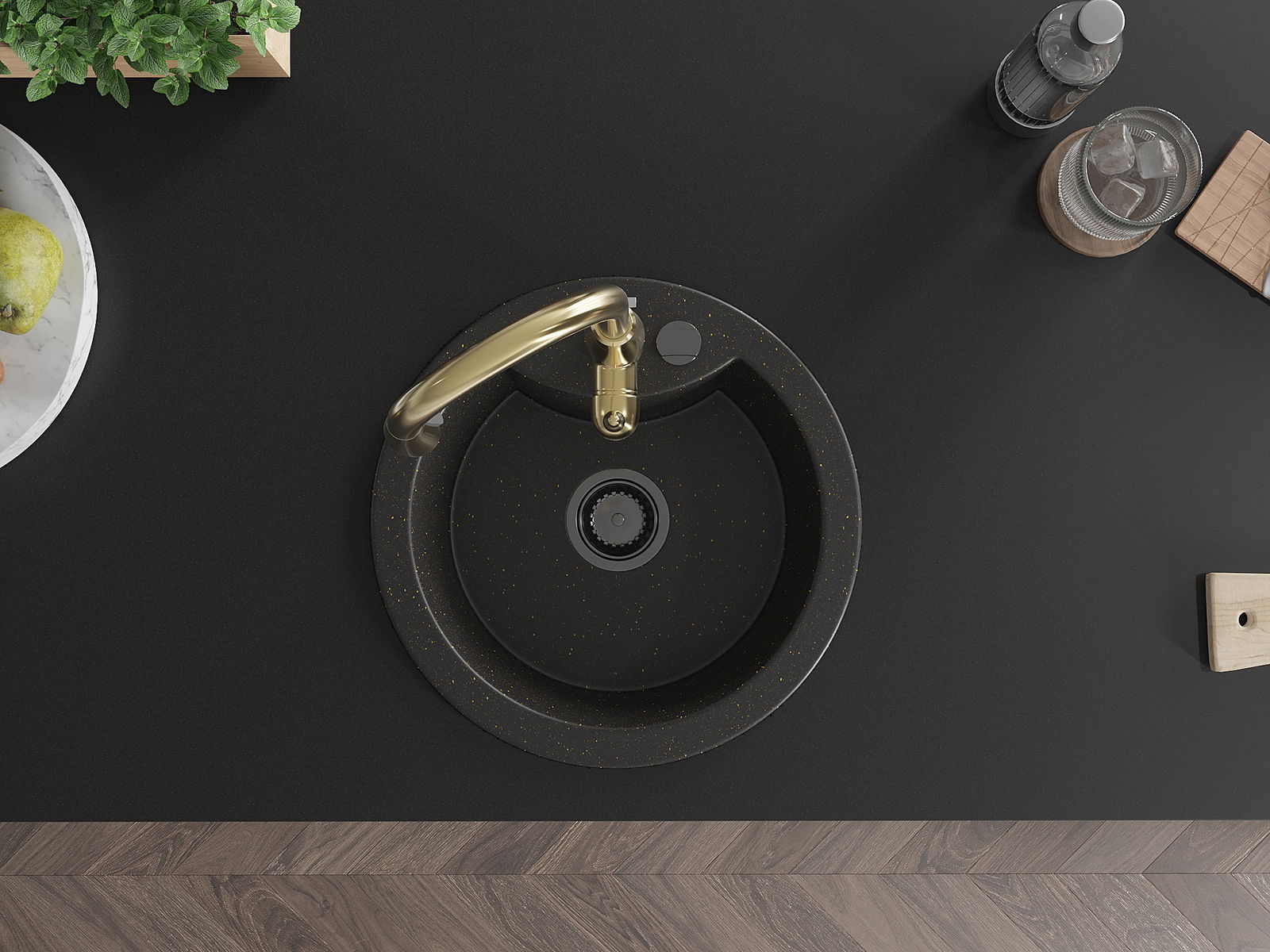 Mexen Diego granitizlietne ar vienu nodalījumu ar virtuves jaucējkrānu Savita, melns/zeltains metāliks - 6512-75-672601-50-B