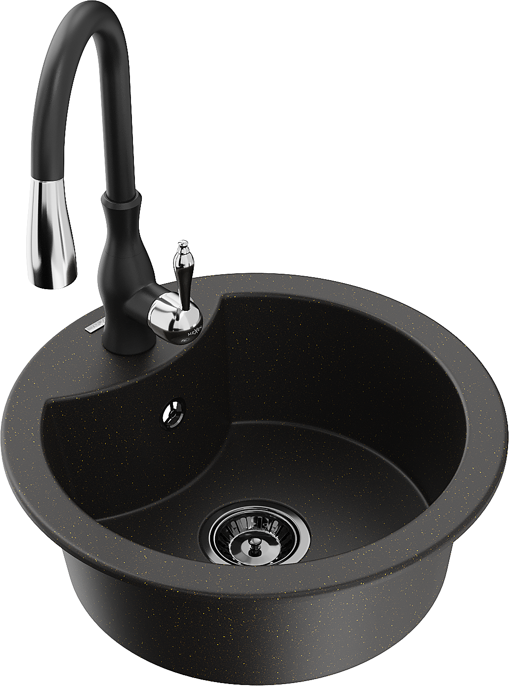 Mexen Diego Granit izlietne ar vienu nodalījumu un virtuves jaucējkrānu Savita, melns/zeltains metaliks - 6512-75-672601-70-B