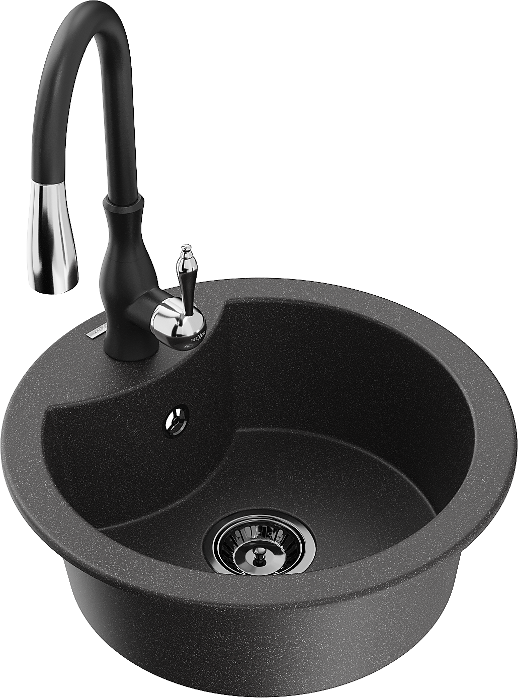 Mexen Diego granit izlietne ar 1 nodalījumu un virtuves jaucējkrānu Savita, melna ar plankumiņiem - 6512-76-672601-70-B