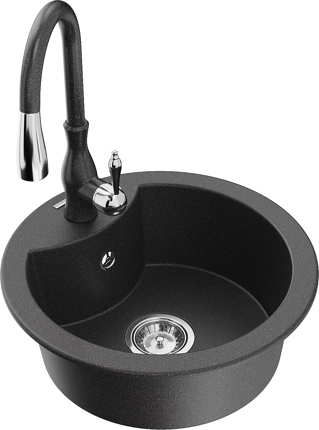 Mexen Diego granitā izlietne ar vienu nodalījumu ar virtuves jaucējkrānu Savita, melns raibs - 6512-76-672601-76