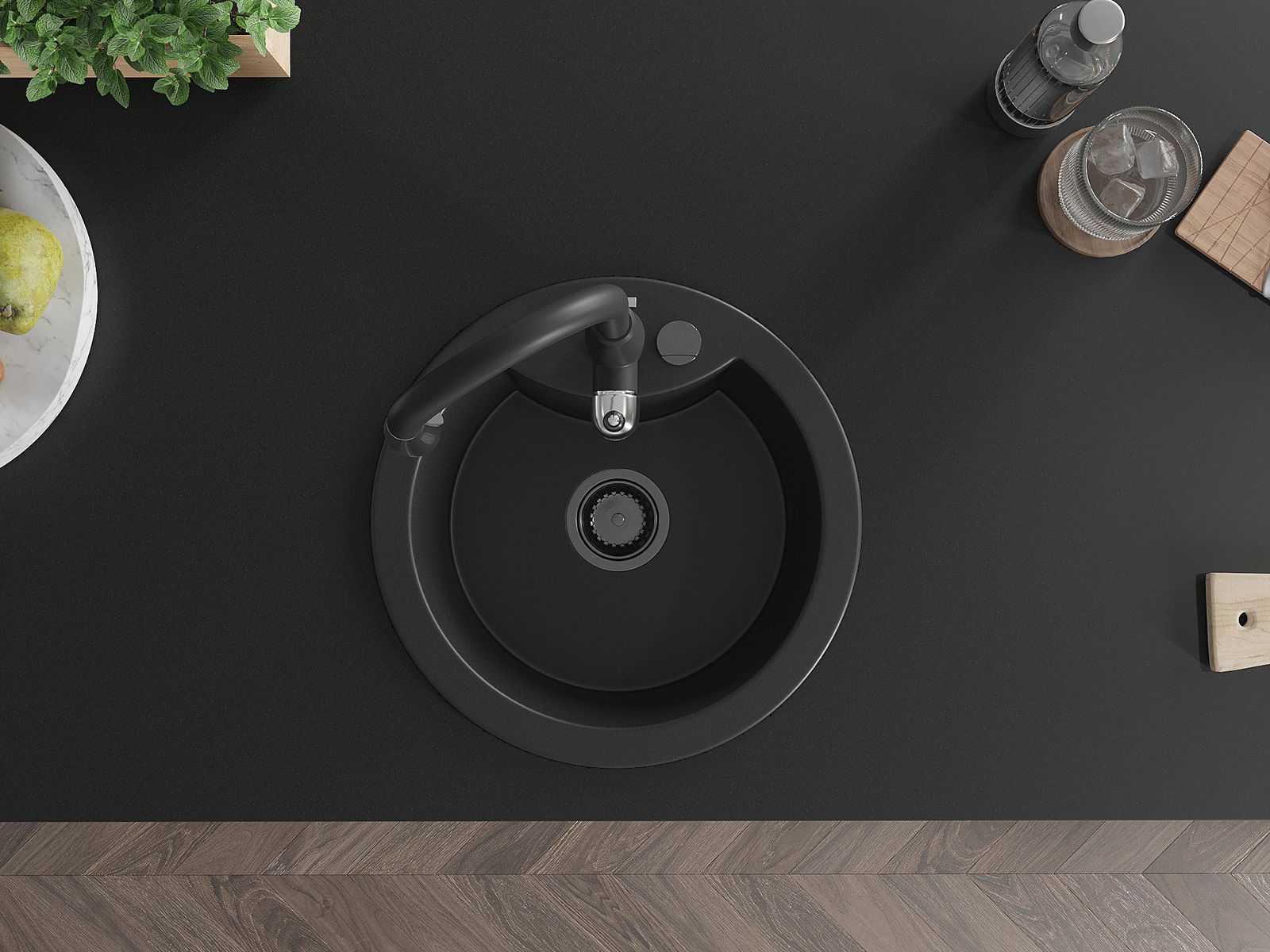 Mexen Diego grants izlietne ar vienu nodalījumu un virtuves jaucējkrānu Savita, melna - 6512-77-672601-70-B