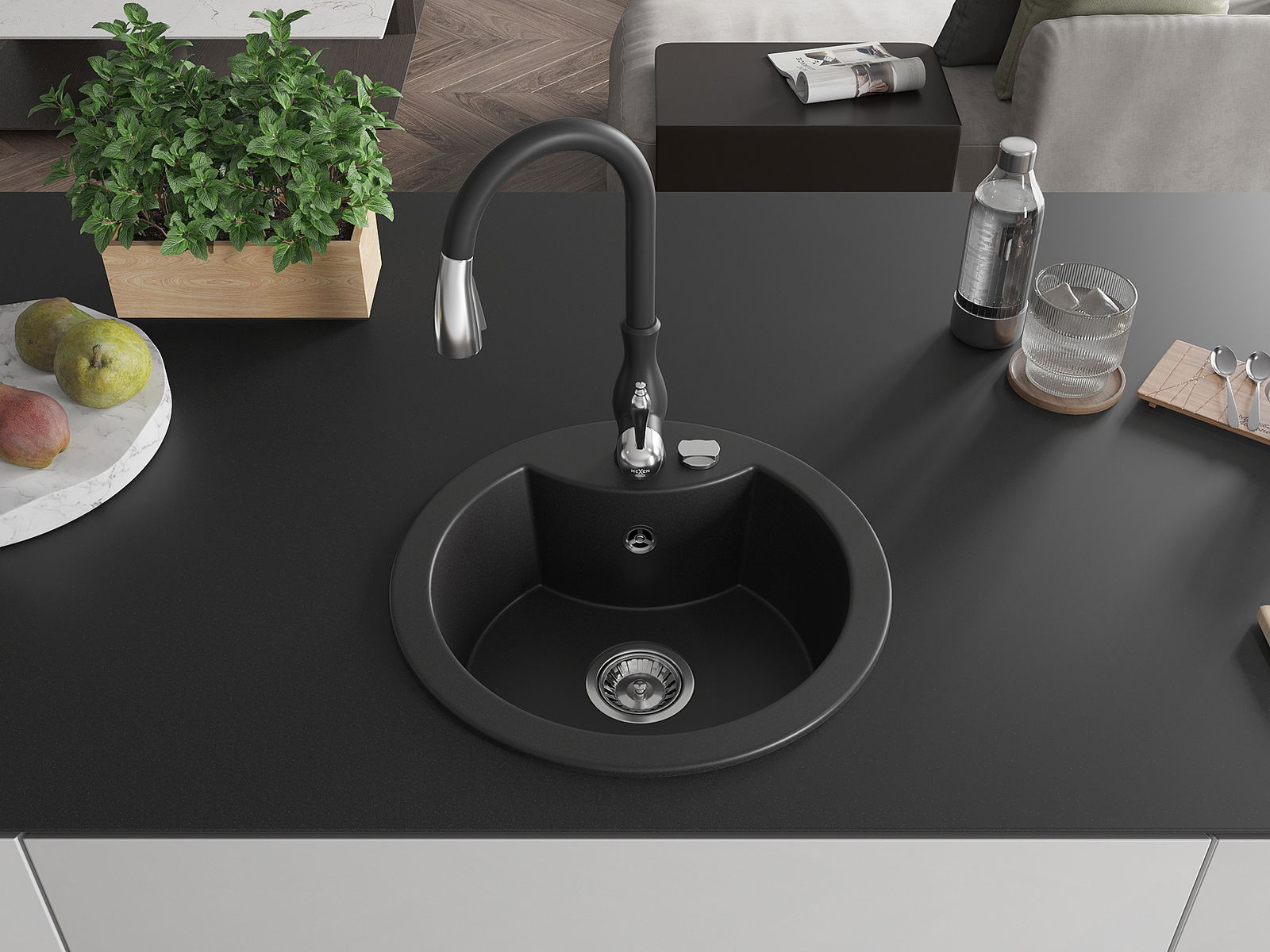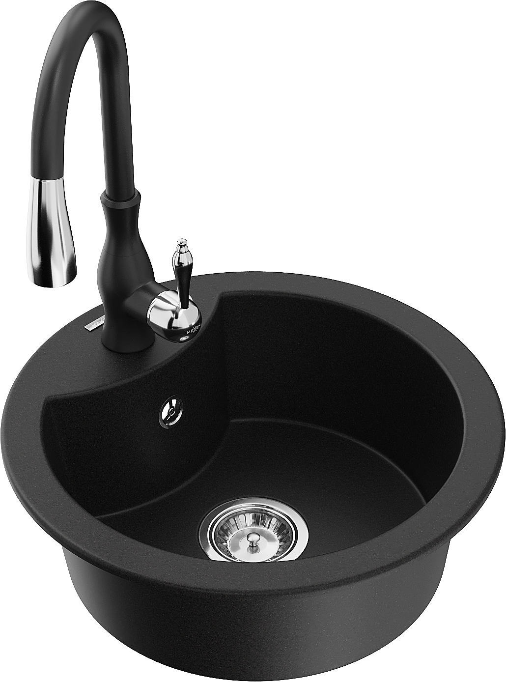 Mexen Diego granīta izlietne ar vienu nodalījumu un virtuves maisītāju Savita, melna - 6512-77-672601-70