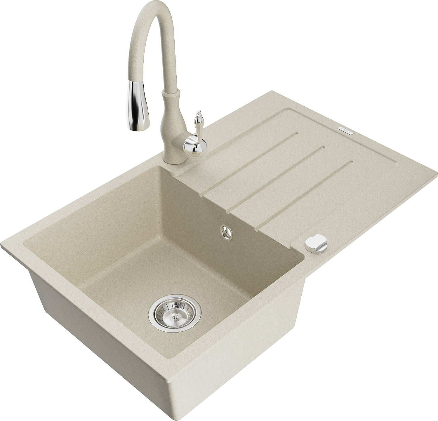 Mexen Bruno granitizlietne 1-kameru izlietne ar noteci un virtuves jaucējkrānu Savita, bēša - 6513-69-672601-69