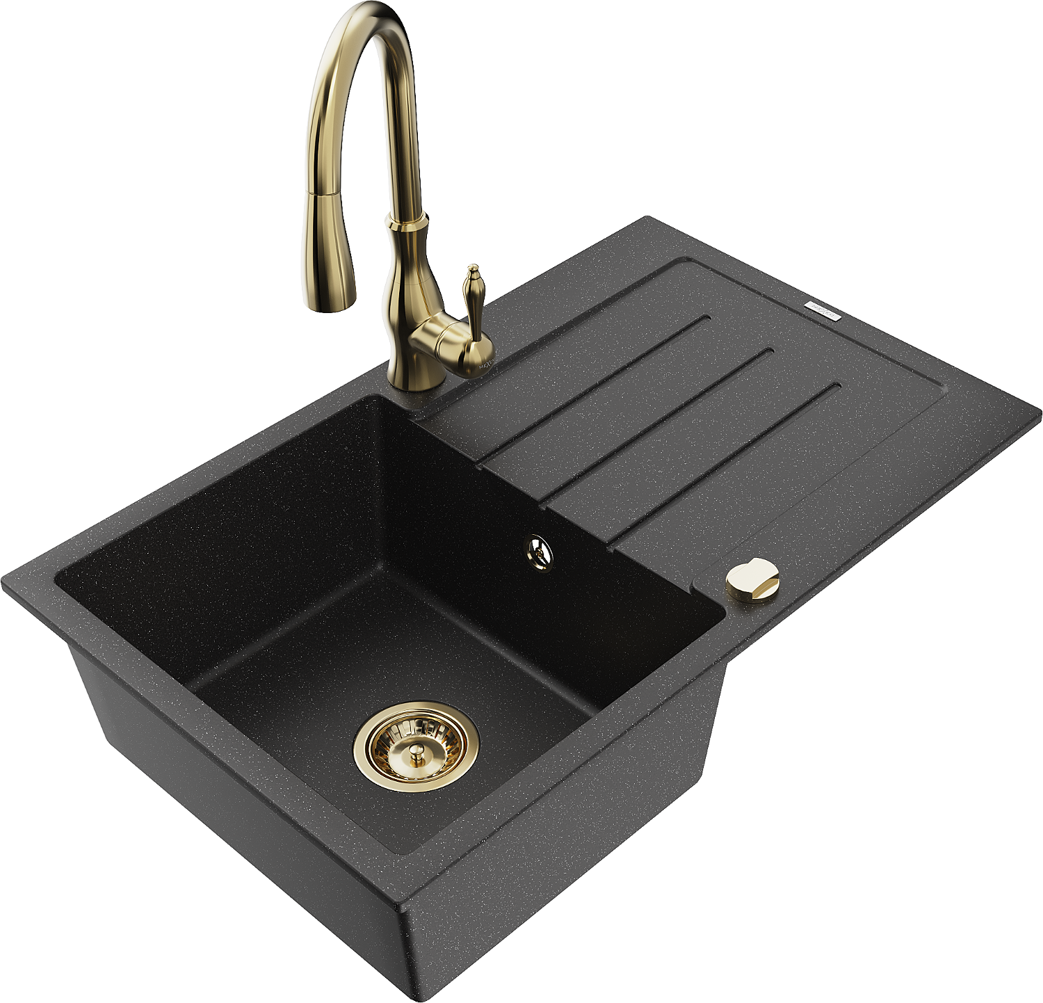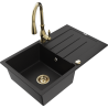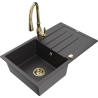 Mexen Bruno granit izlietne ar vienu nodalījumu ar noteci un virtuves jaucējkrānu Savita, melns/sudraba metālika