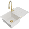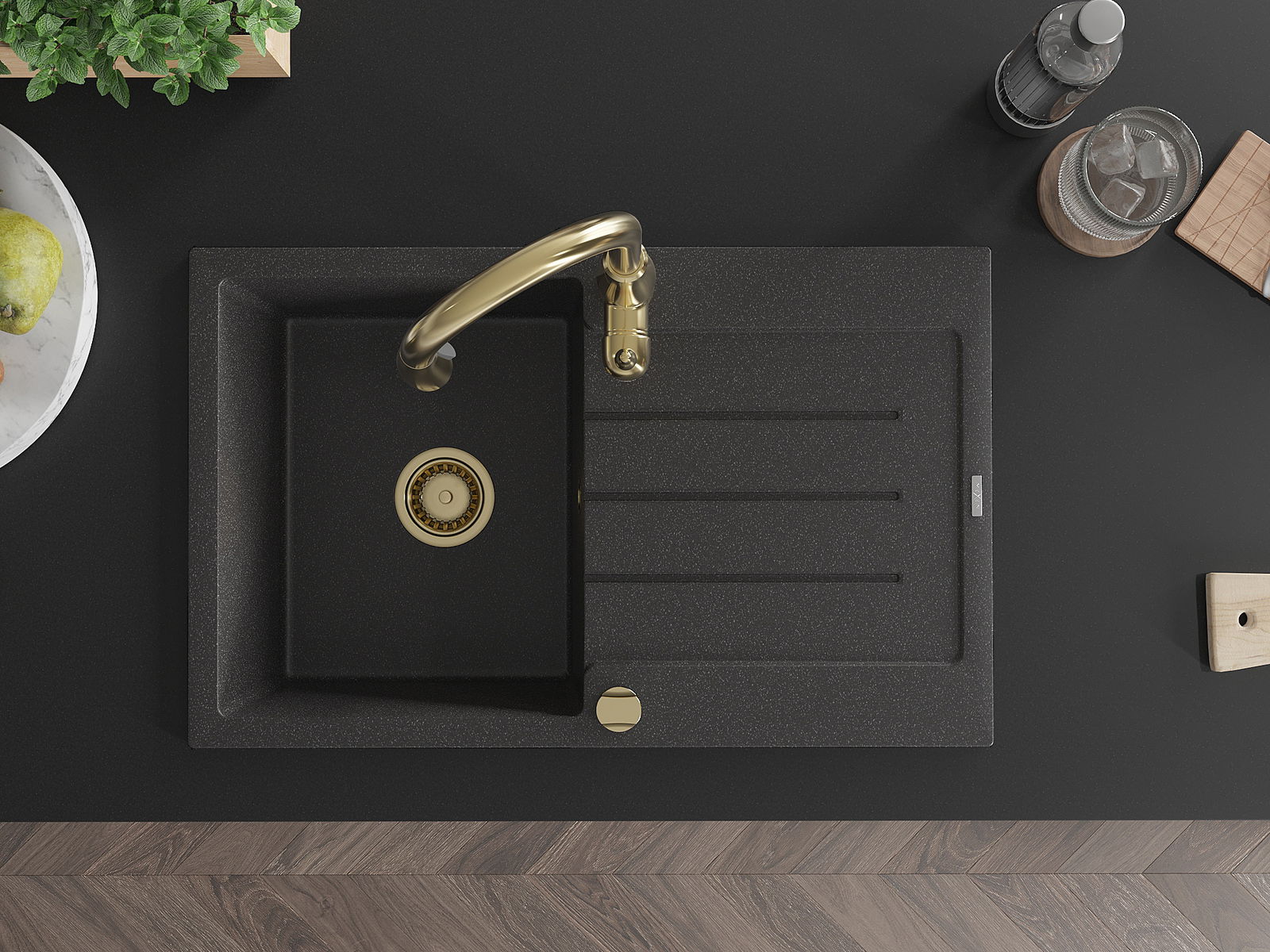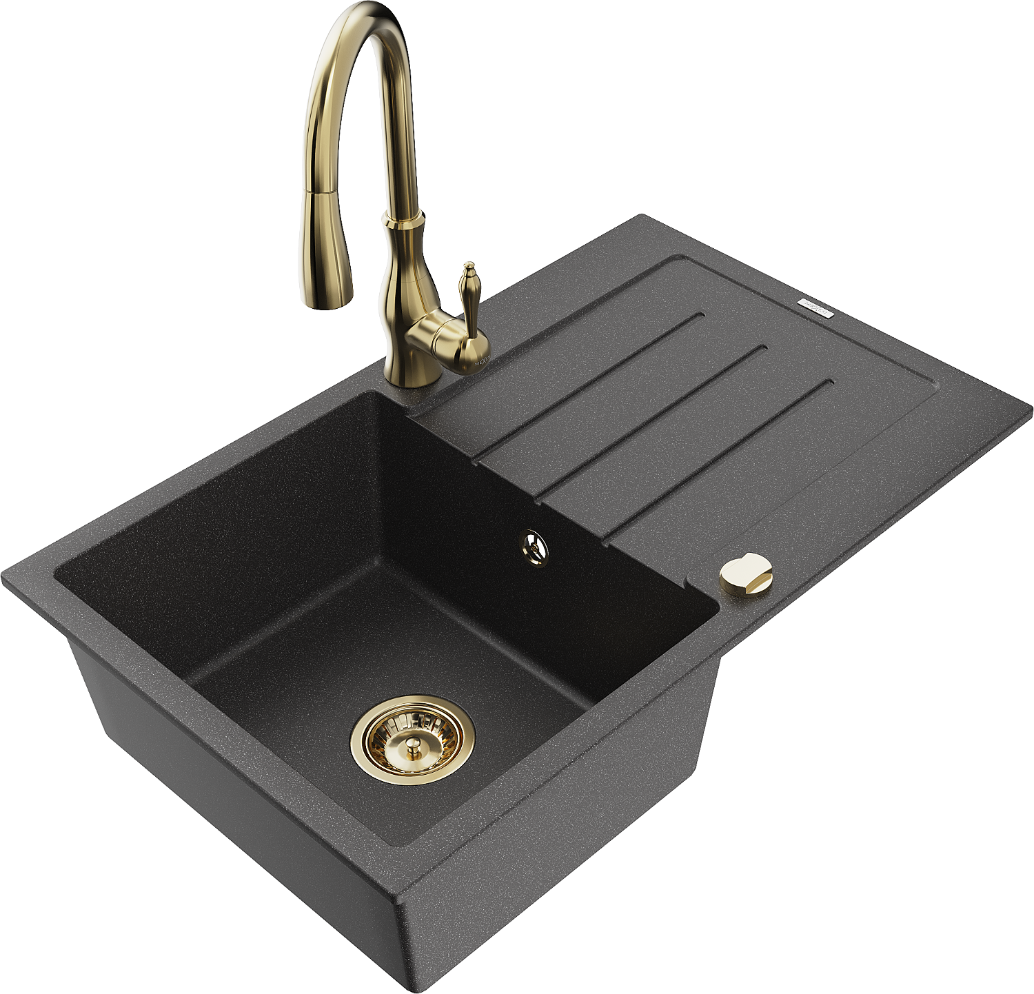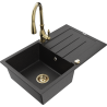 Mexen Bruno granitizlietne ar vienu nodalījumu ar notekplati un virtuves krānu Savita, melns ar punktiņiem