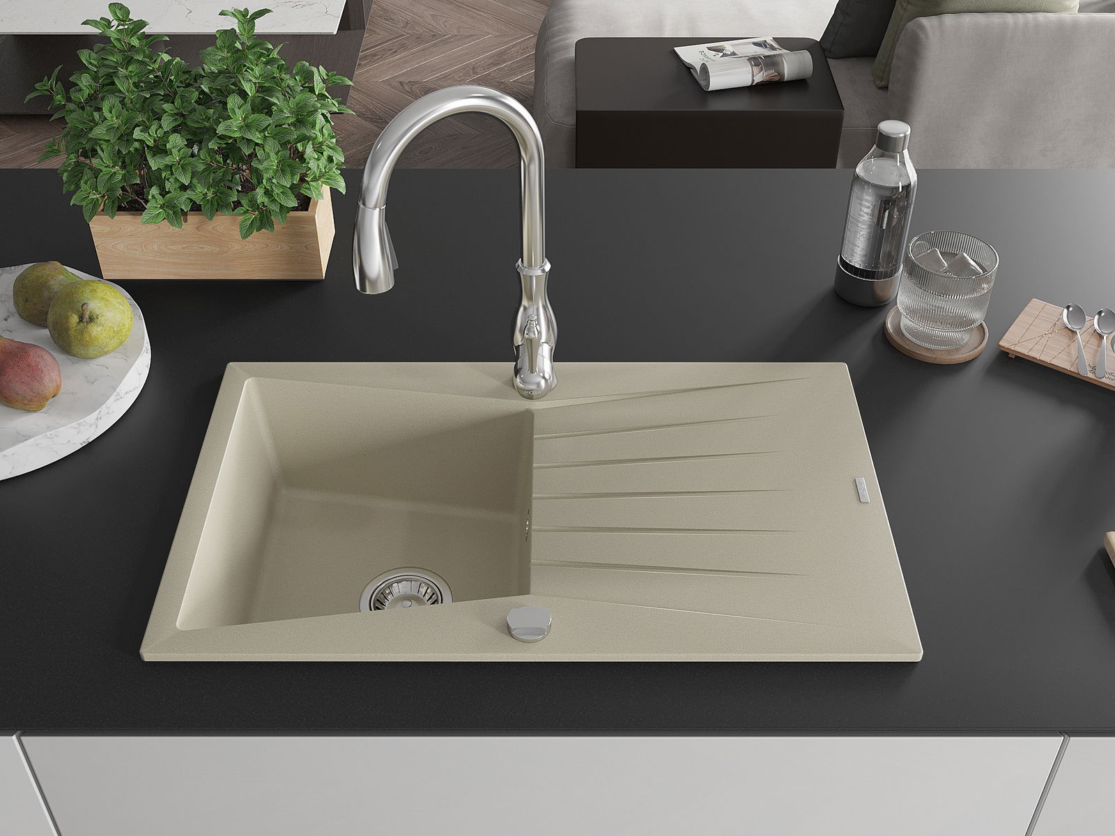 Izlietnes virsma ir izturīga pret traipiem un krāsas izmaiņām, tāpēc to ir viegli uzturēt tīru un tā saglabā savu krāsu ilgu lietošanas laiku. Estētiski un praktiski papildina jebkuru virtuvi.