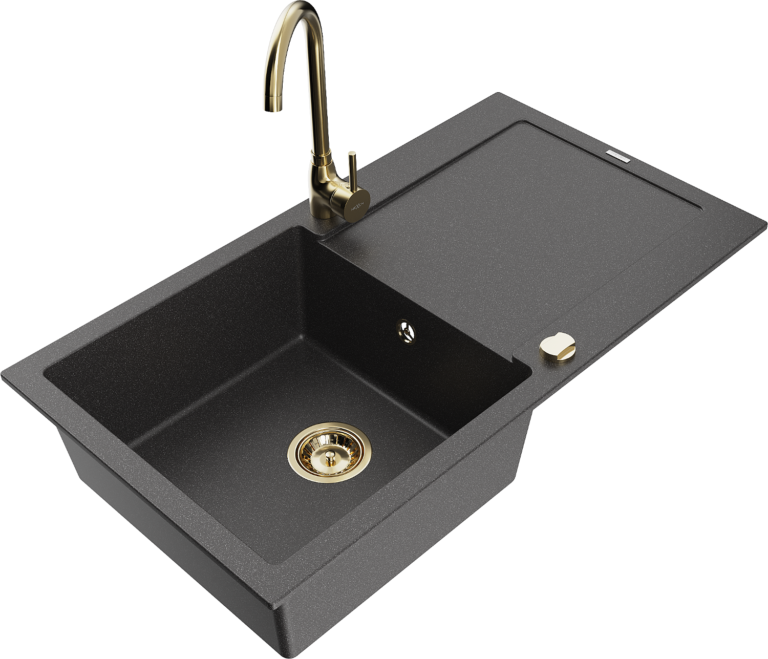 Mexen Leo granitizlietne 1-nodalīte ar noteces platformu un virtuves jaucēkli Telma, melns ar plankumiem - 6501-76-670200-50